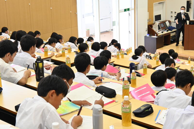2023年9月12日 13時44分 9月12日(火)1学年は、「体験活動」で東日本国際大学に伺いました。大学では、実際に模擬授業をしていただき、生徒も積極的に授業へ参加していました。