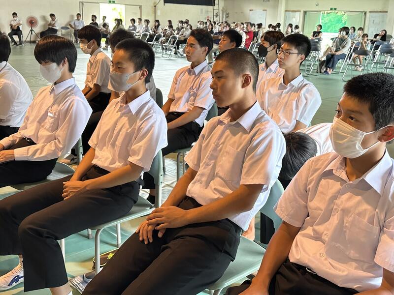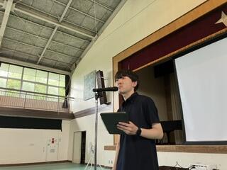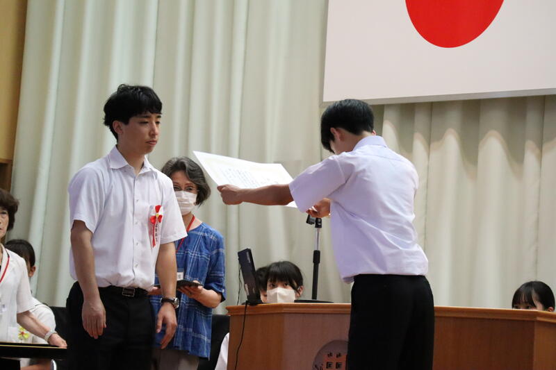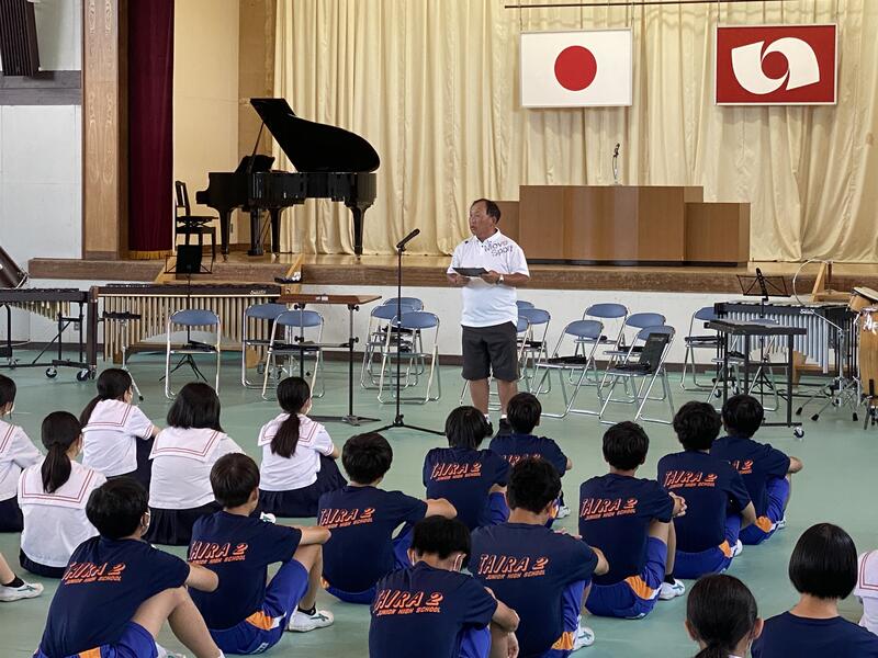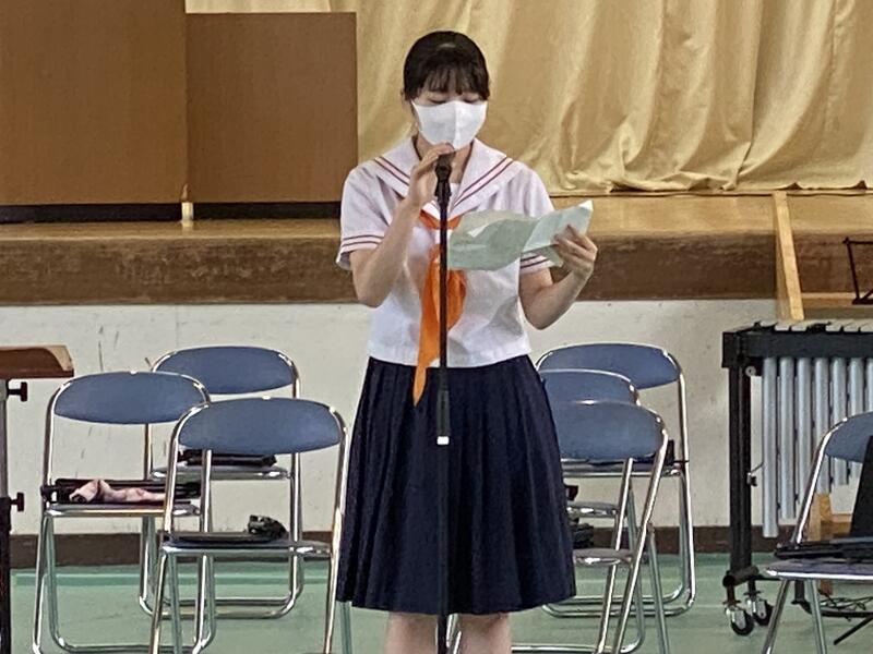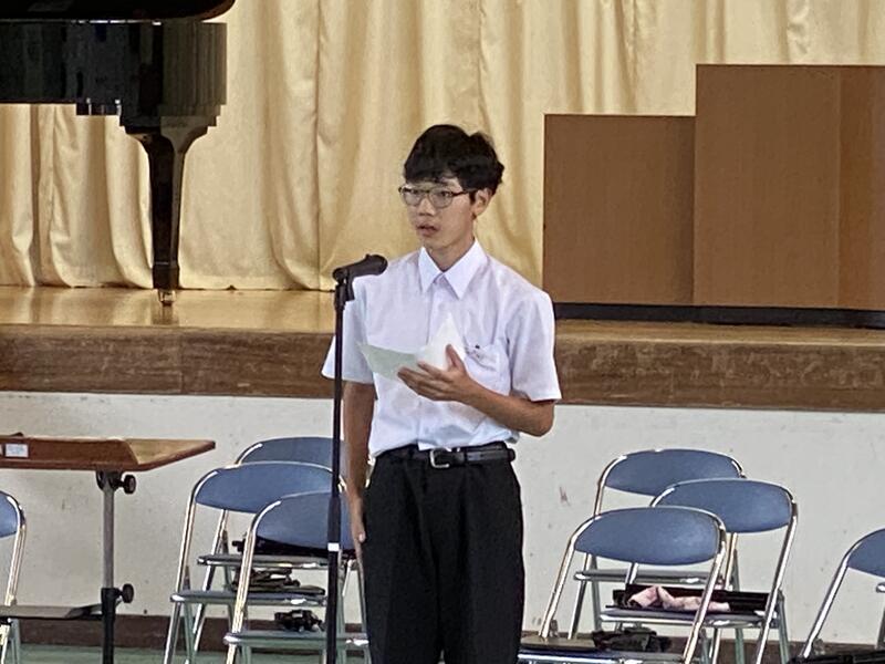 その後、夏休みの生活、学習についての話があり、最後に13日に行われる弁論大会のリハーサルを行いました。