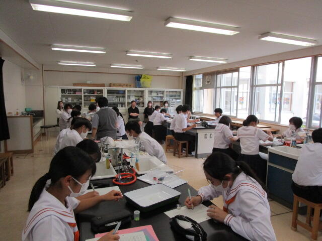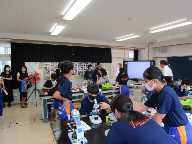 1年3組では、生物の分類の仕方の学習を生かし、普段食べている給食を科学的に見てわかったことを発表していました。