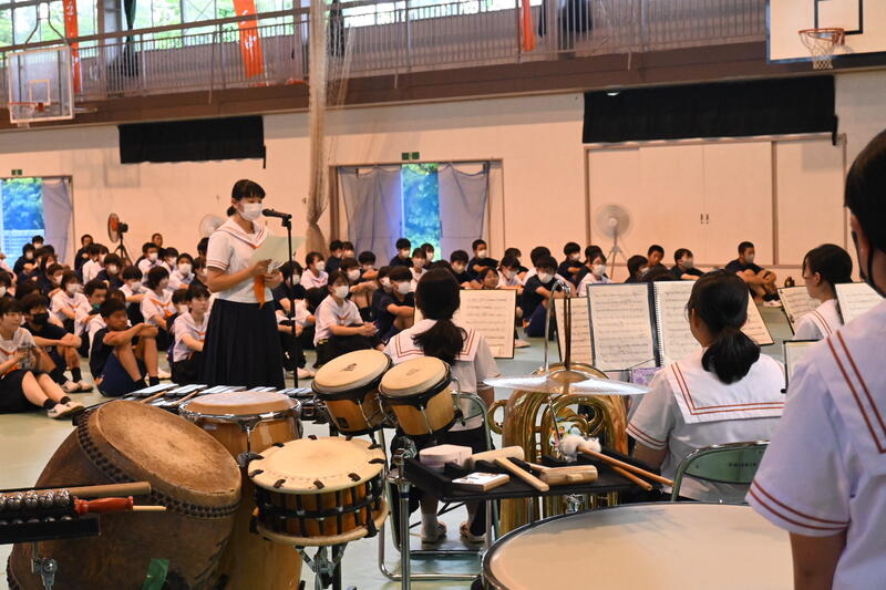 今日は、7月15日(土)に行われる吹奏楽コンクールの壮行会が行われました。
