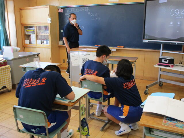 5組では、文字式の学習で、個別だけでなく、発表したり教えあったりすることで理解を深めていました。