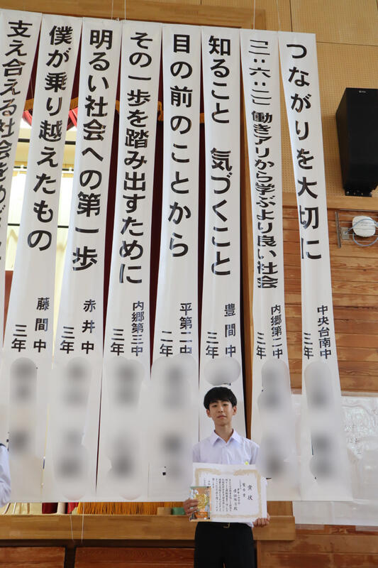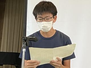 『目の前のことから』を題に、社会を明るくするために「あいさつ」と「相談し合える関係作り」を大切にしていきたいと、堂々と述べました。