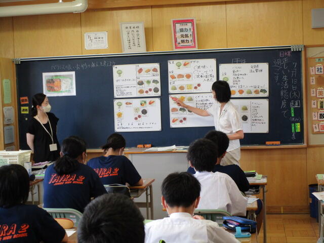 1年2組で栄養教諭の先生をお招きして、食に関する授業がありました。