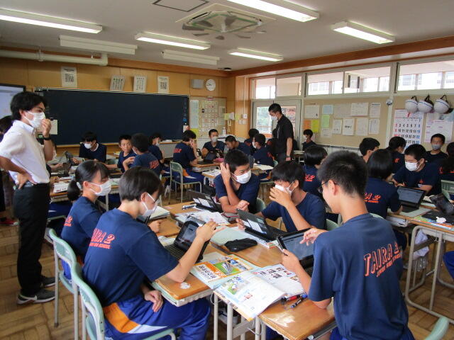 2校時3年1組、4校時1年2組で研究授業がありました。