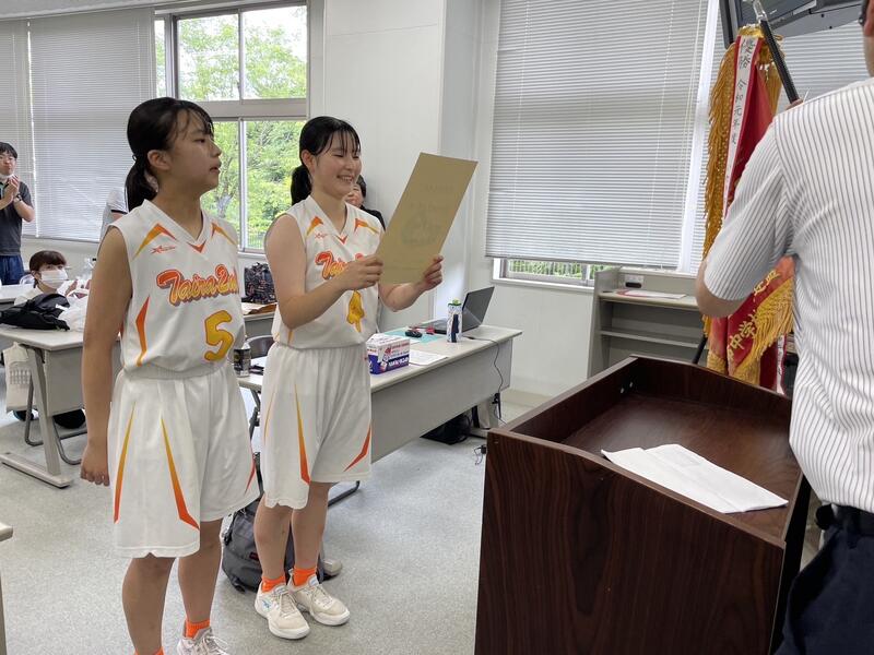 6/13(火)の部活動にて最後のミーティングを行い、3年生の2年2ヶ月にわたる中学バスケ生活が終了しました。3年生から2年生へとバトンが渡り、今後の1・2年生の活躍が楽しみです。4名の3年生たち、今まで本当にありがとう!
