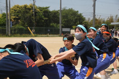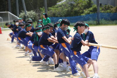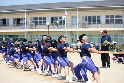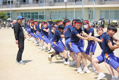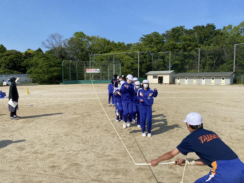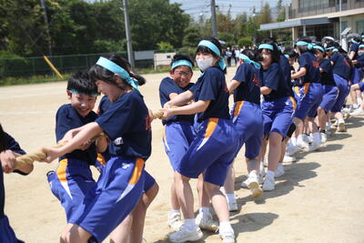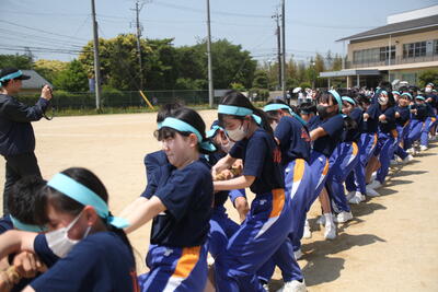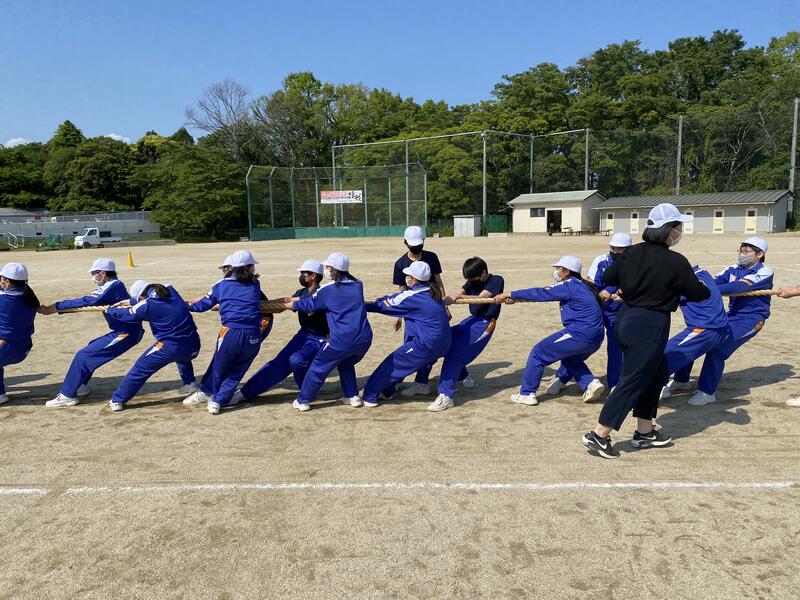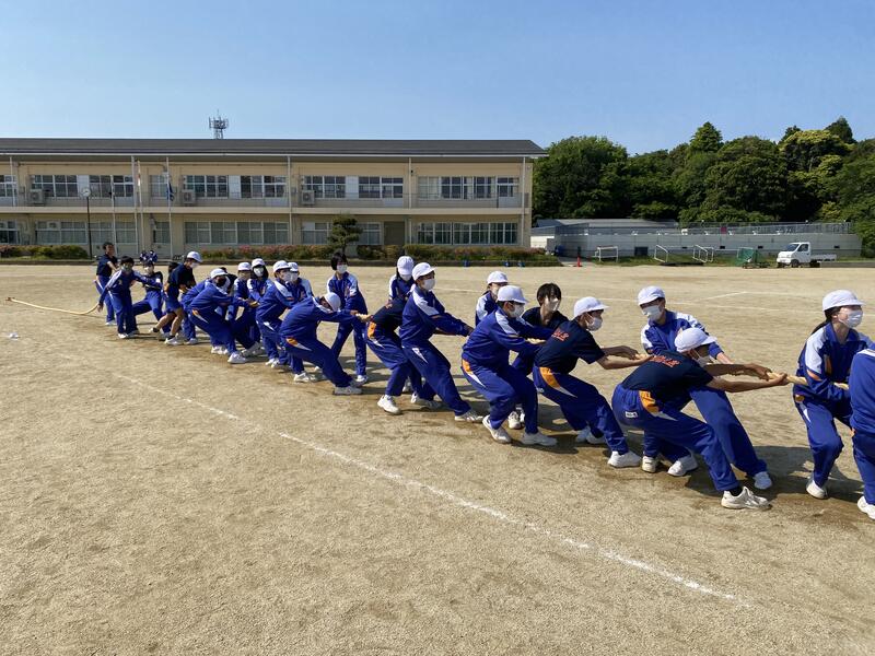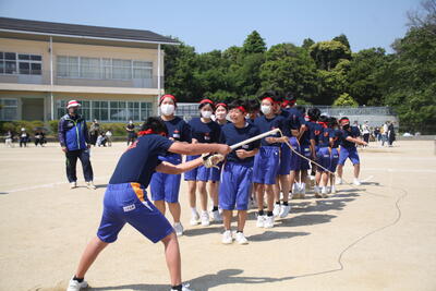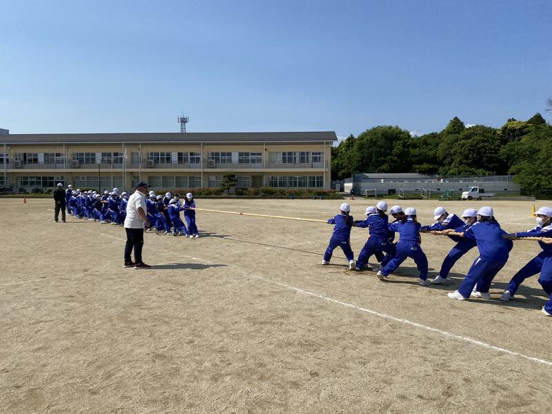 5月12日(金)5校時にスポーツ大会練習を行いました。開会式、閉会式の全体練習、残りの時間は学年練習をしました。1年生は、初めて綱を引きました。