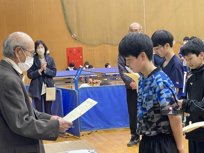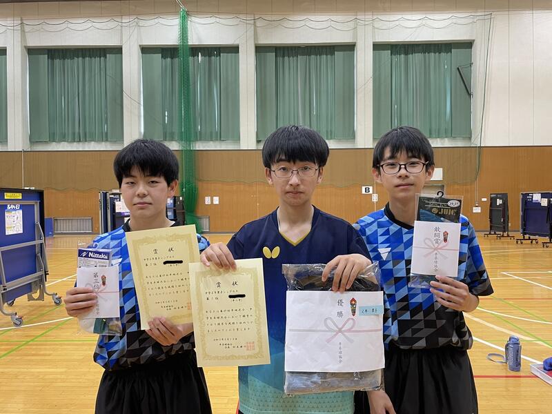 ▼中学2年男子シングルス 第1位 G.Sくん、第3位 S.Tくん、第5位 W.Yくん