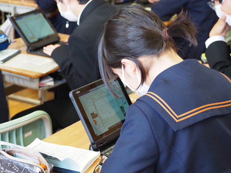 その後は教室に戻り、クラスごとにまとめ学習を行いました。タブレット端末を利用してスライドを作成しているところです。作成したスライドは、4/28(金)5時間目の授業参観の際に発表する予定です。是非、お子さんの思い出を聞きに学校に足をお運びください。