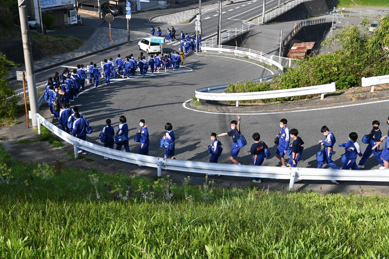 中学校に入学して初めての校外活動となります。朝の集合時から遠足への期待が伺いみえます。