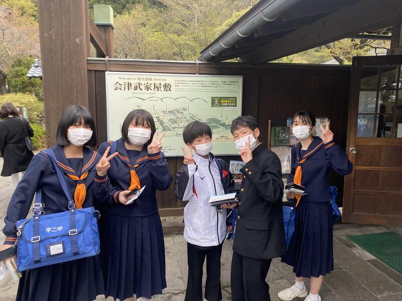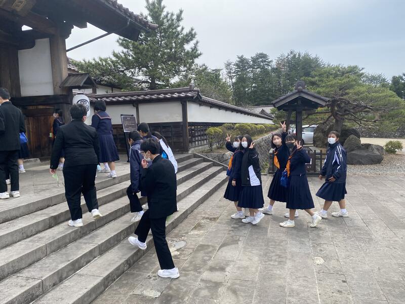 2023年4月18日 10時36分会津への遠足スタートしました。まずは日新館を見学しています。天気は晴れています♪