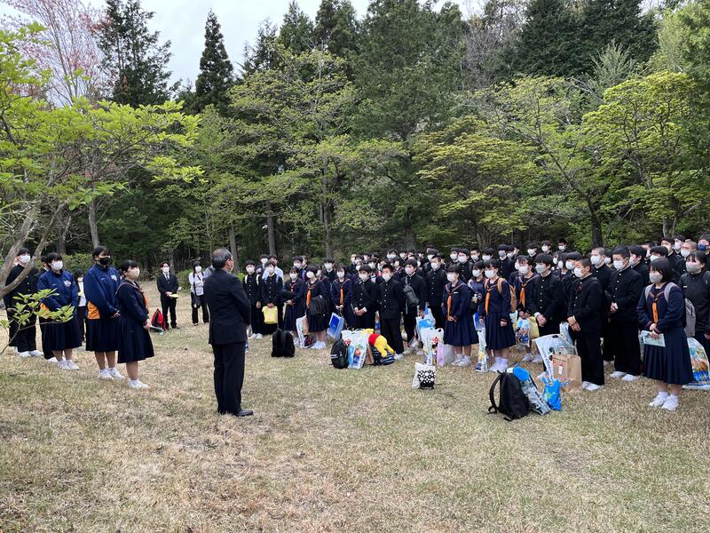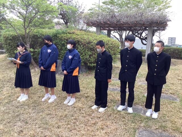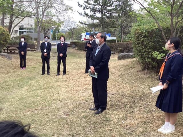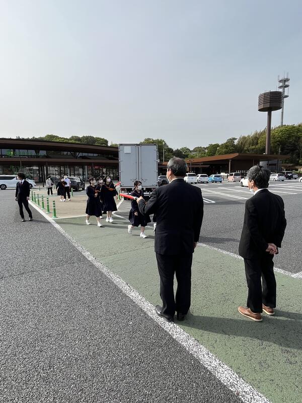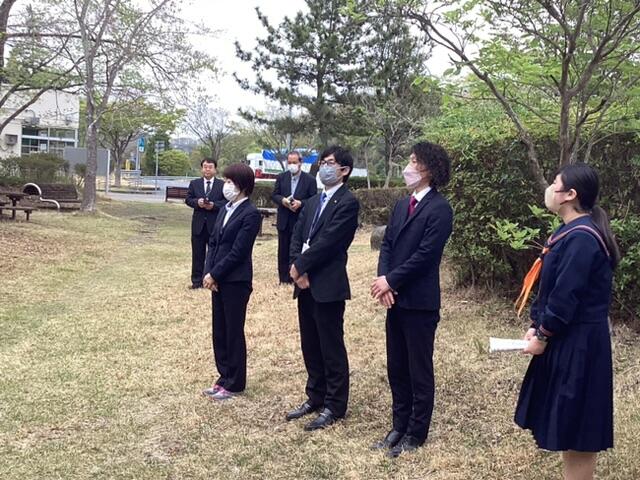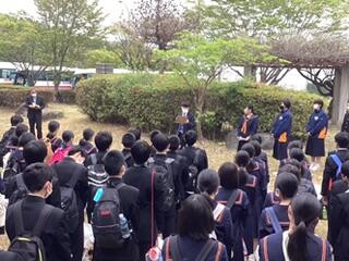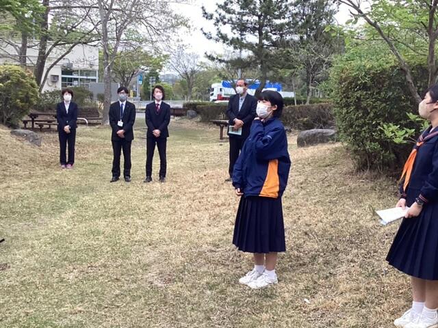 2023年4月14日 10時10分室内の公開はできないため、外でのクラス写真になります。