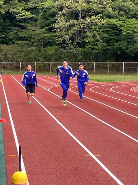 修学旅行も終わり、1日休んでの競技場練習ができました。