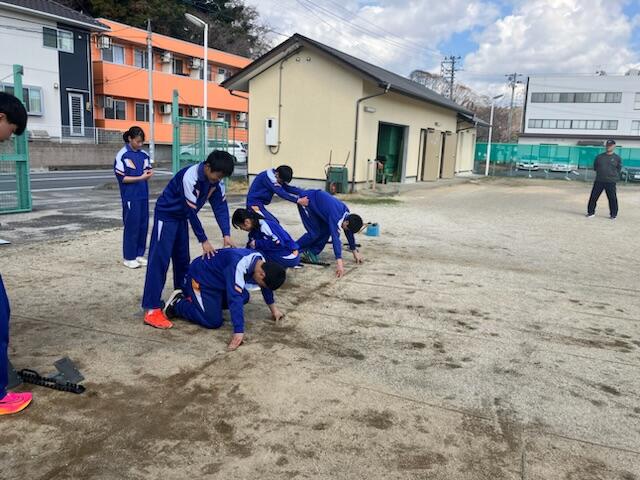 2023年3月27日 11時24分春休みに入りました。昨日の跳躍・長距離競技会の疲れも見せずに練習に取り組んだ陸上競技部員達です。