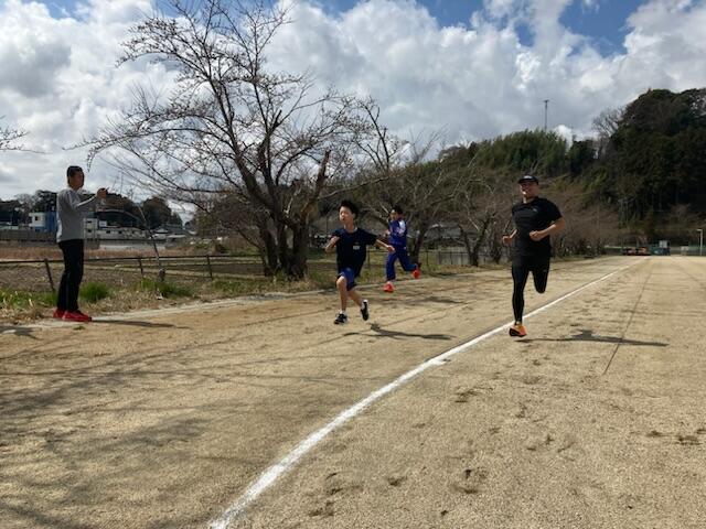 最初の1本のタイムを測定し、残り9本を1本目のタイム以内に走るメイン練習。