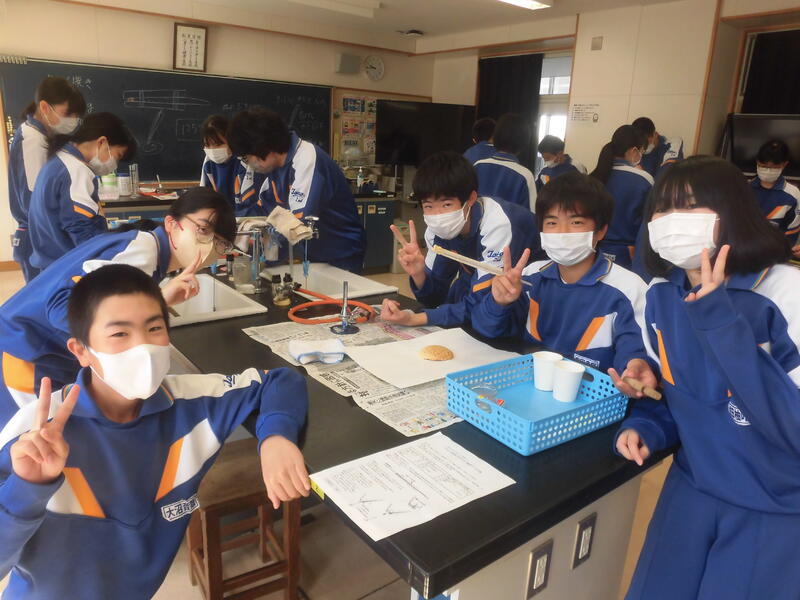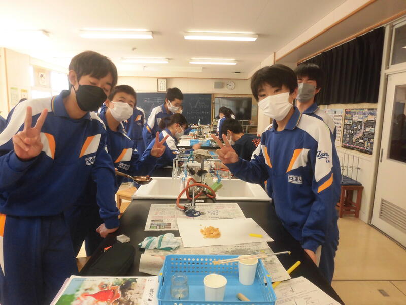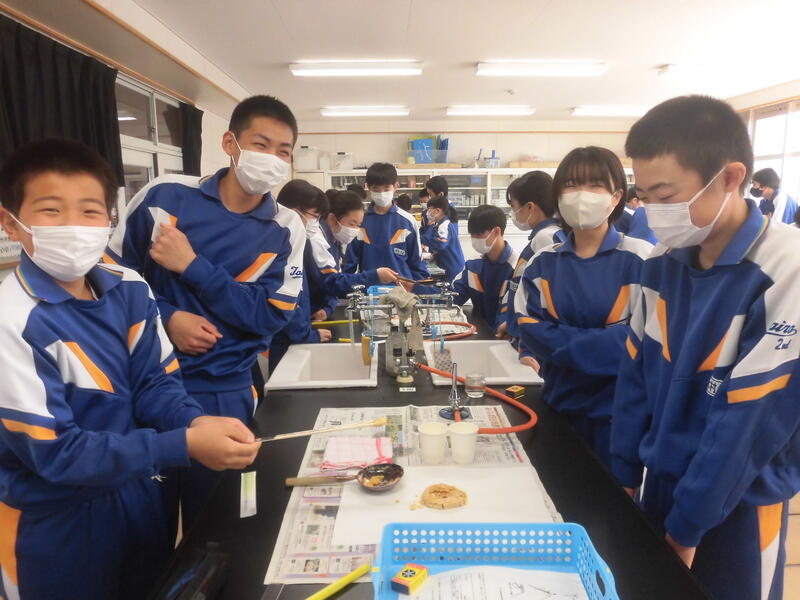 2023年3月22日 11時57分3月22日(水)2校時に2の2の理科で、カルメ焼きを作りました。1班が加熱しすぎてべっこう飴のようになりましたが、おいしかったそうです。これで2年生の理科はおしまいです。3年生になっても楽しく学んでほしいです。
