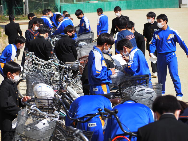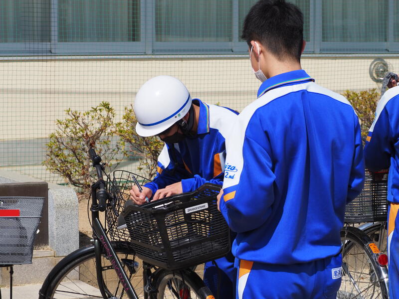 2023年3月22日 13時19分自転車通学を申請している生徒を対象に、自転車点検を行いました。