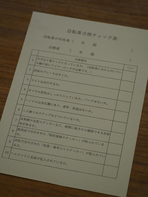 以下のチェック項目を相互に確認し、安全に登下校ができるかの確認を行いました。