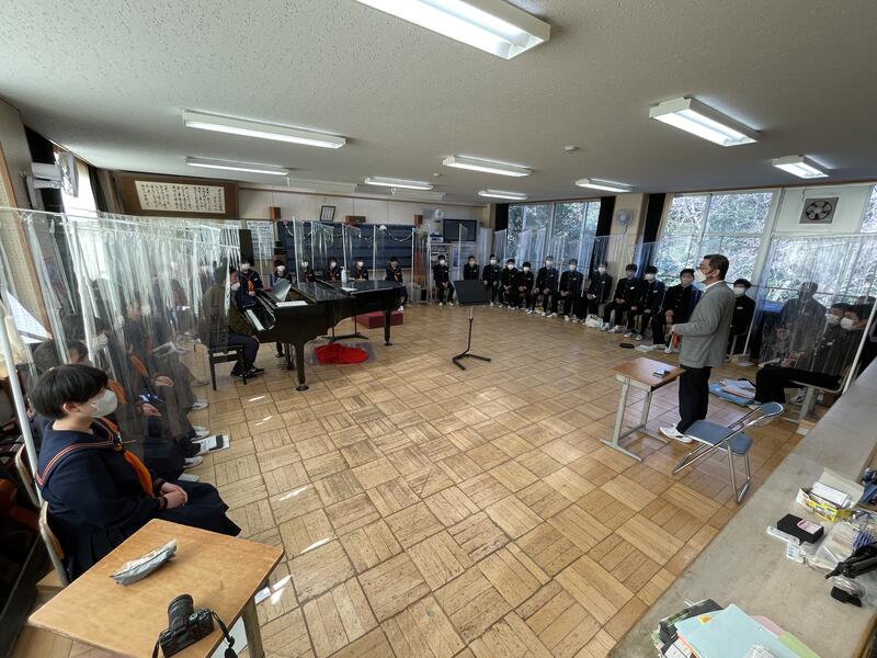 (2年3組は3/16、2年2組は3/17の音楽の授業で行われました。)