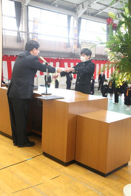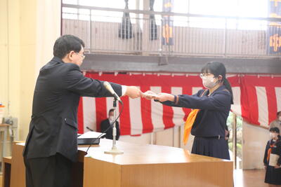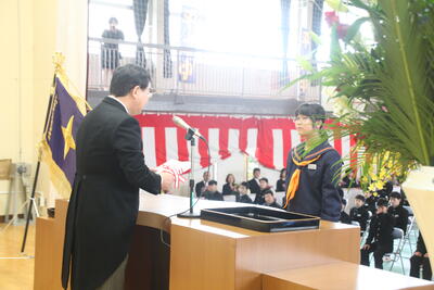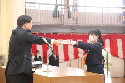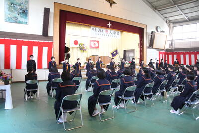 校長先生から修了証書を授与され、校長式辞、校歌で終了しました。