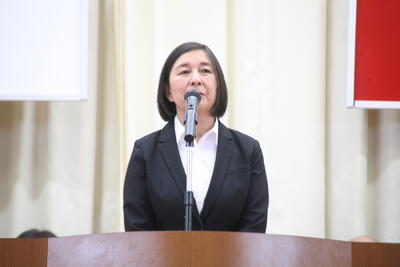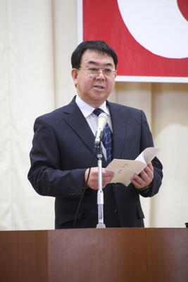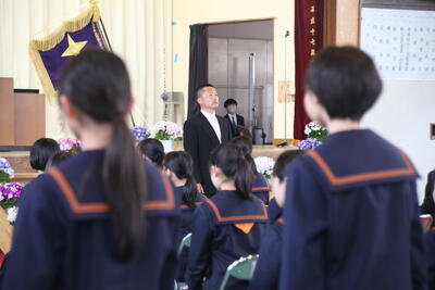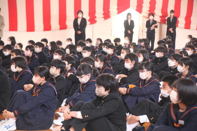 生徒代表や先生のお話に、よく耳を傾け、うなずきながら真剣に話を聞く姿がありました。