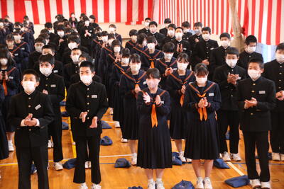 午後から入学式を行いました。新入生100名が全員出席できました。元気に呼名をし、新たなスタートを切ることができました。