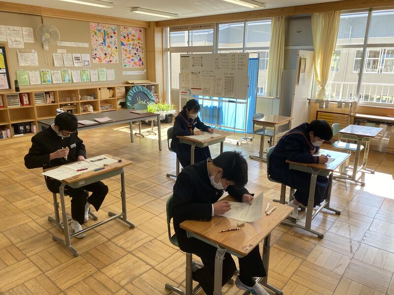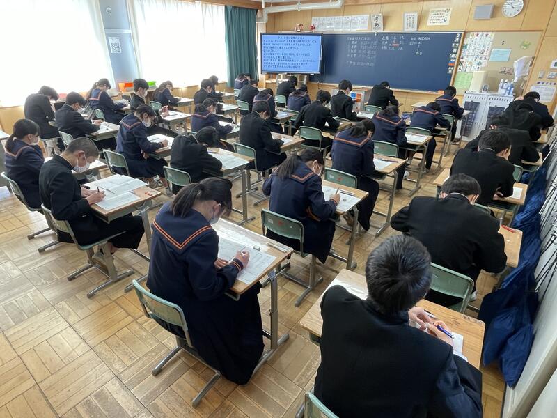 2023年2月17日 10時43分2月16日、17日に学年末テストを行いました。一生懸命、問題を解いています。
