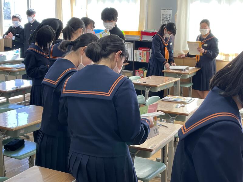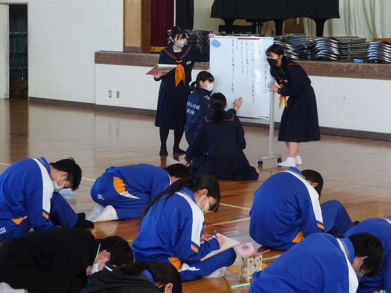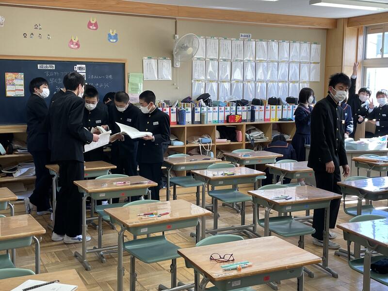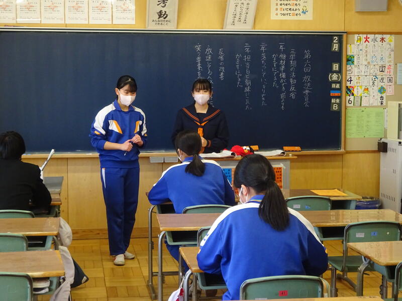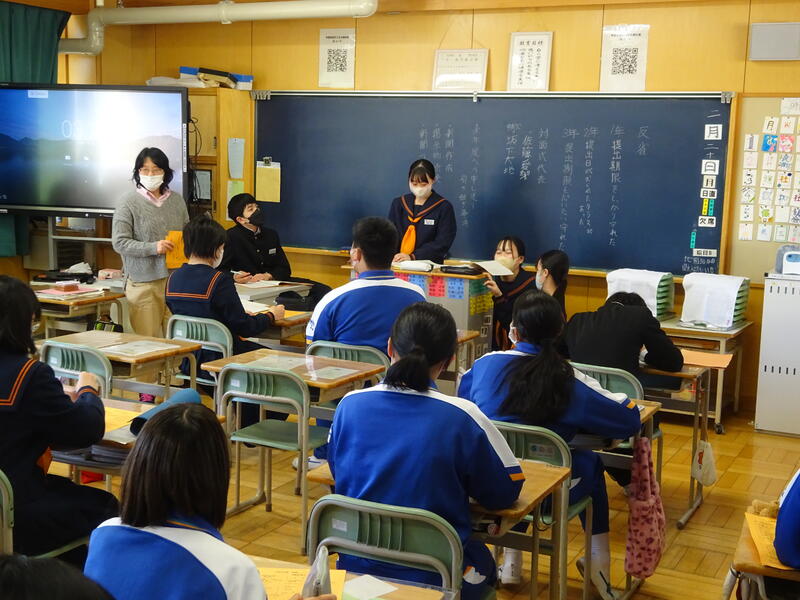 2023年2月9日 20時11分先週、3年生の生徒たちが3年間お世話になった、ALTの先生と最後の英語学習をしました。最後の授業は、英語クイズをしたり、二人のALTの先生から三年生たちに向けて、素敵なスピーチをしていただきました。