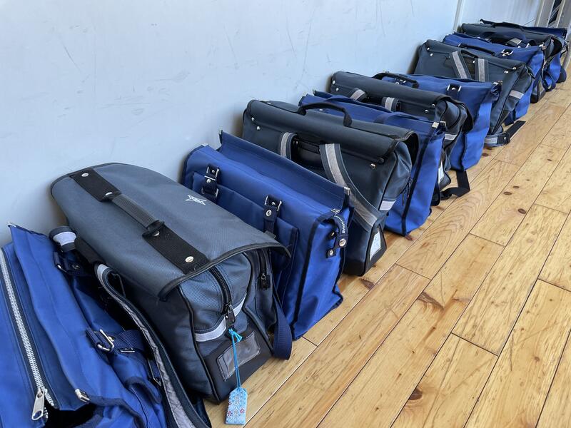 生徒たちがテストを受けている間、廊下を通ると、カバンが整然と並べられている姿が見られました。