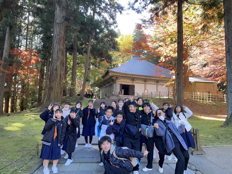 2022年11月15日 12時54分修学旅行1日目です。岩手は天候に恵まれ、とても暖かな気候の中、観光を楽しむことができました。