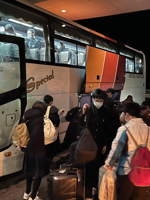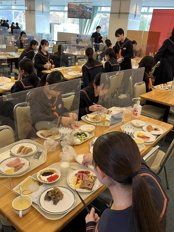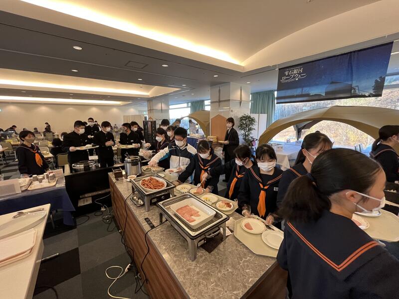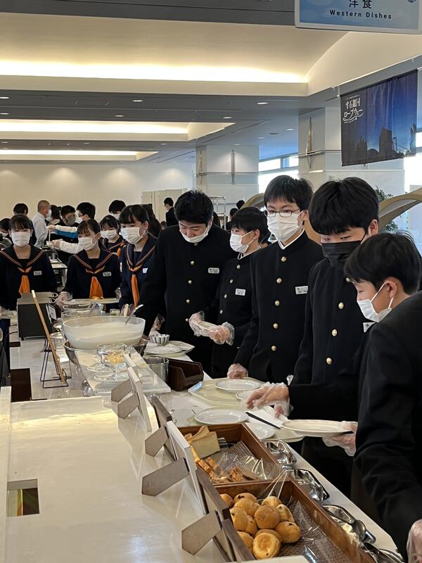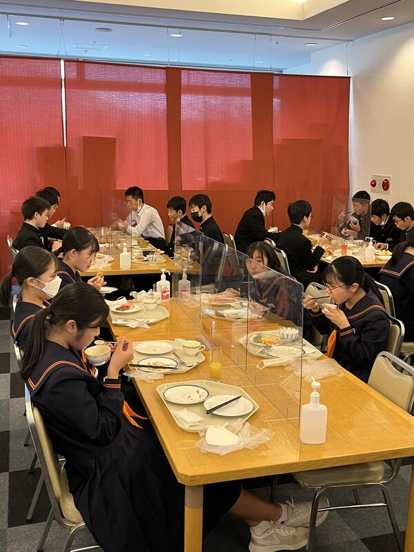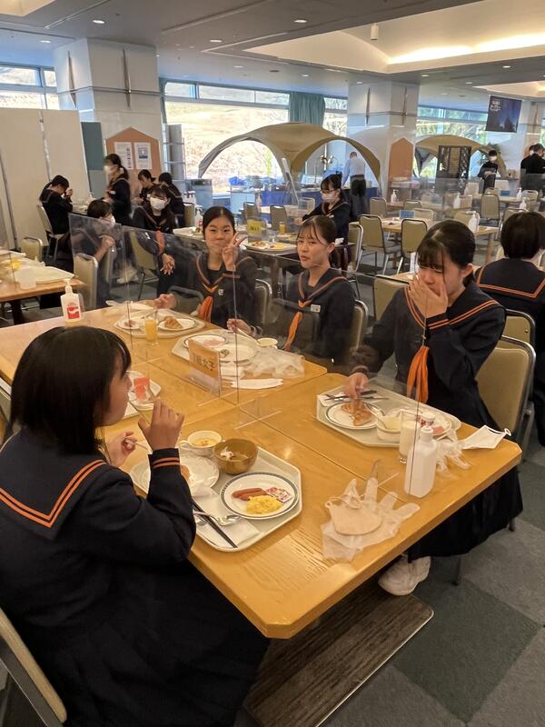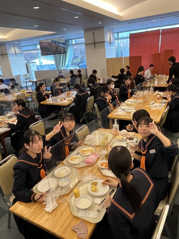 ホテルにも到着して夕食をとり、修学旅行の1日目が終わりました。明日も良い天候に恵まれることを願っています。