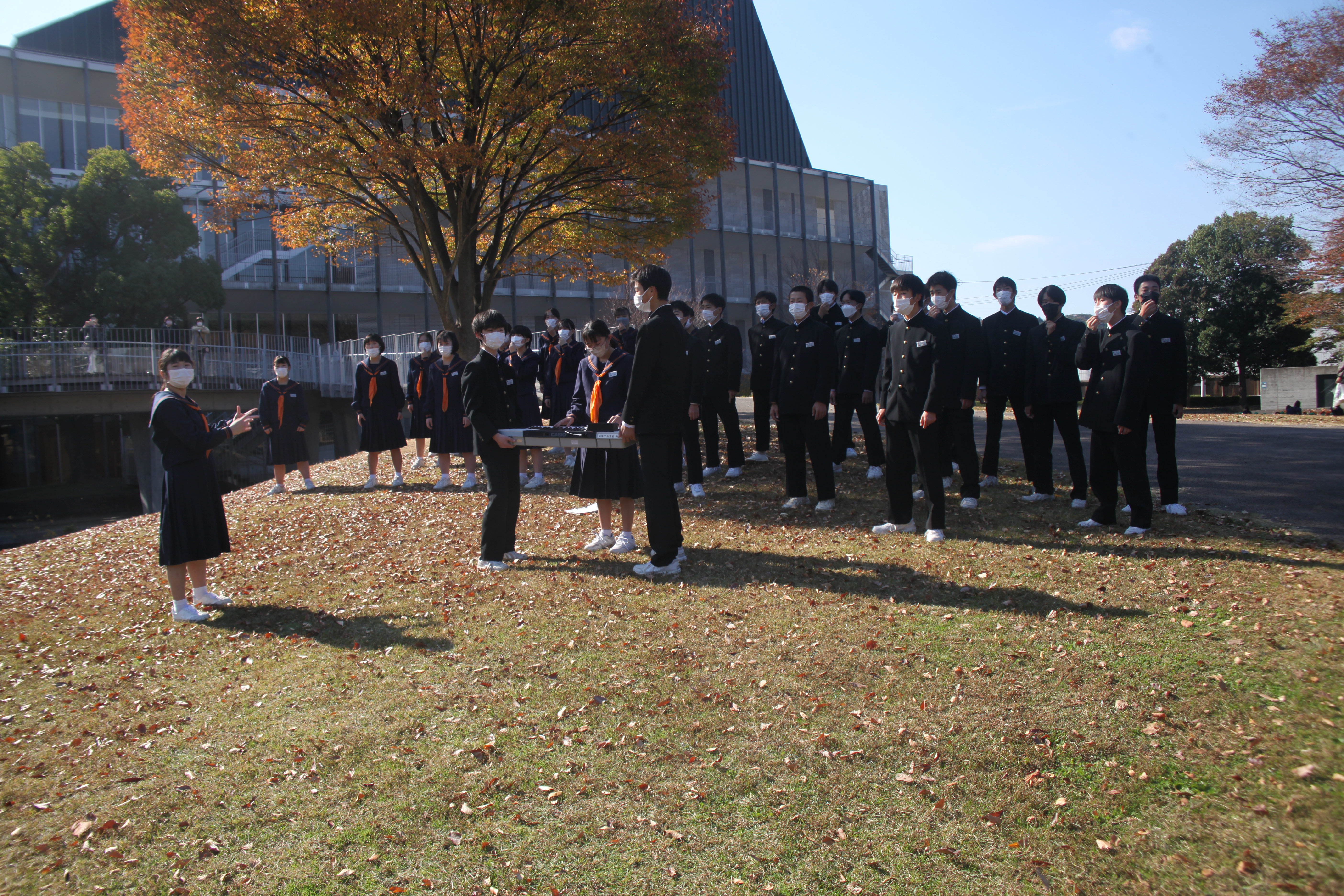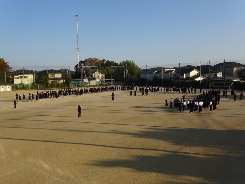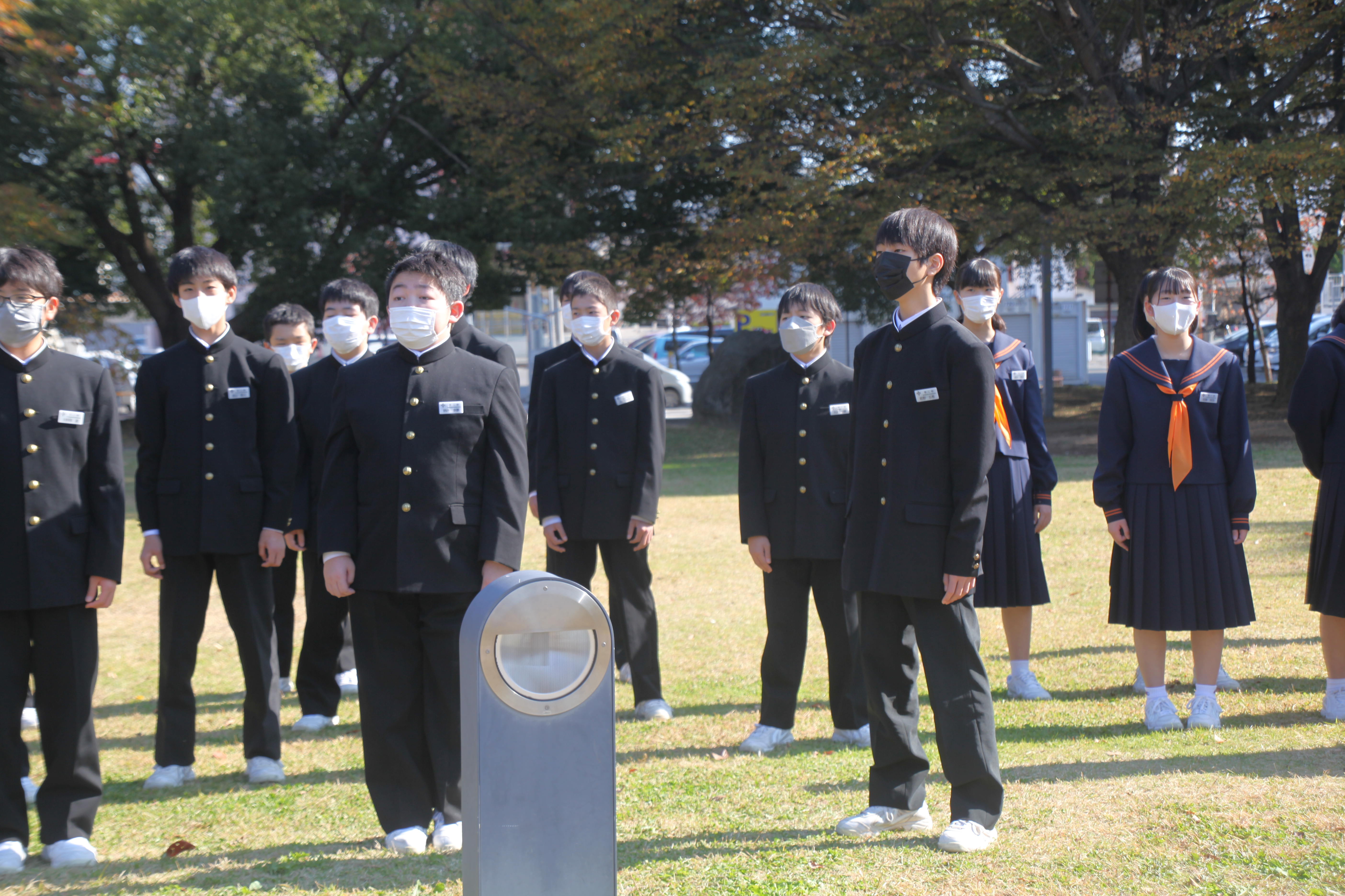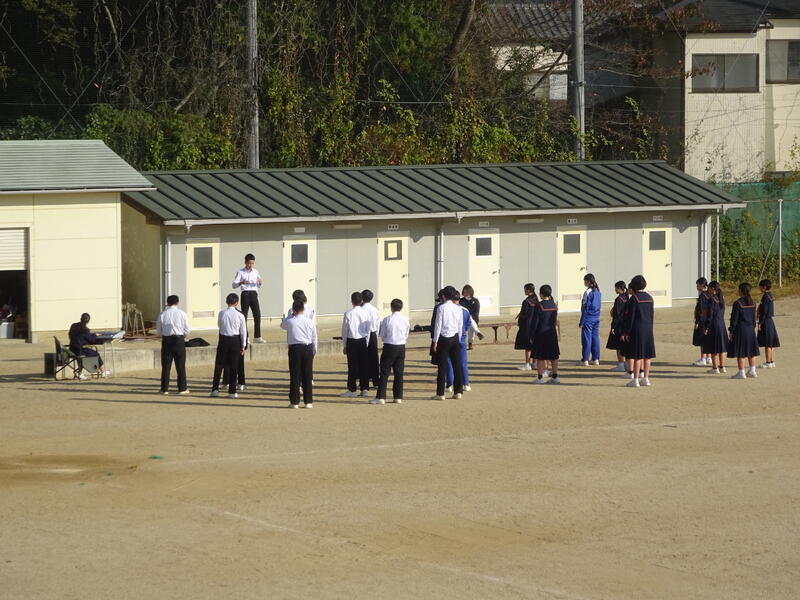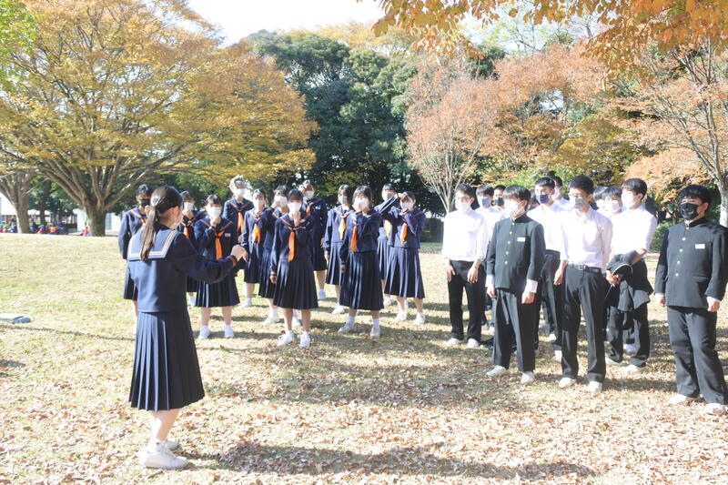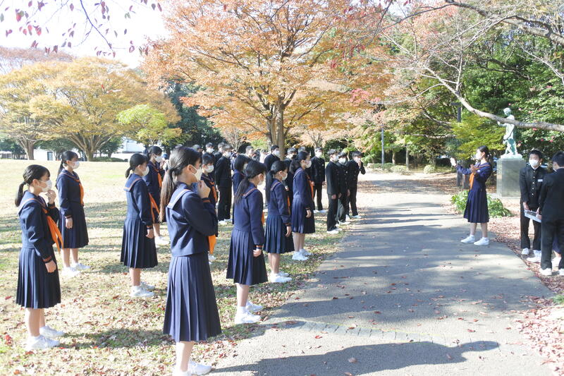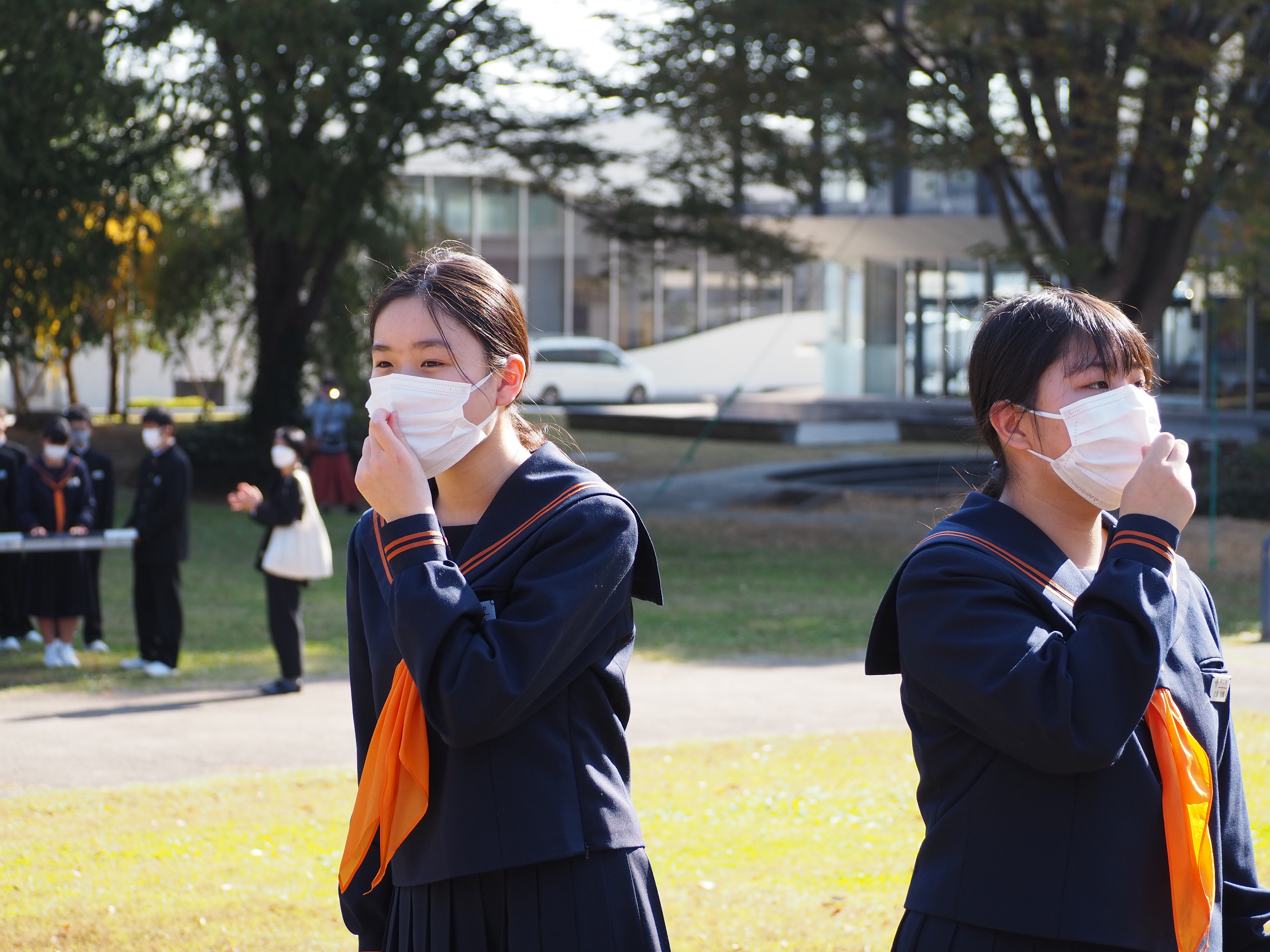 本来は、開会式で全校合唱を行う予定でしたが、感染症予防のために平中央公園にて行いました。紅葉が美しい秋空の下で、全校生による「夢の世界を」が綺麗に響き渡りました。
