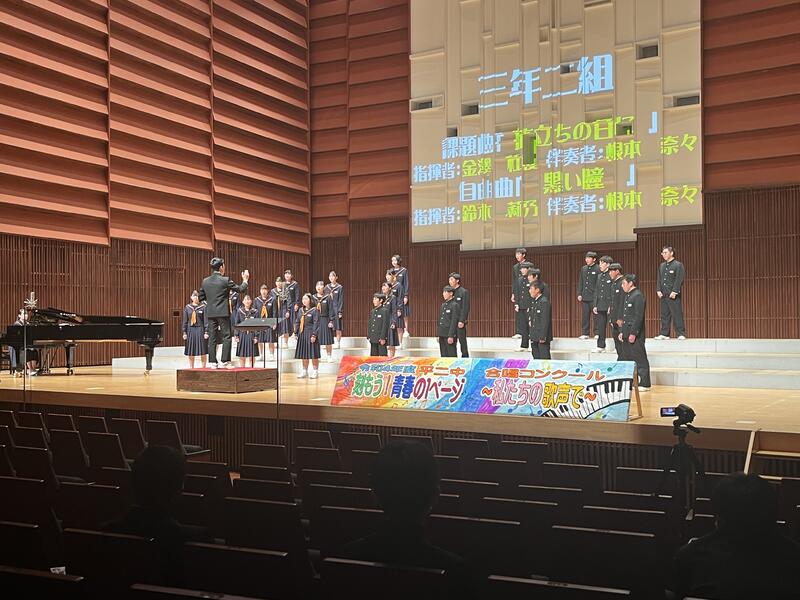 審査員の先生方からも、どのクラスもとてもレベルの高い演奏であるとご講評をいただきました。いわき芸術文化交流館アリオスという素晴らしい会場において有観客で行うことができ、素晴らしい思い出ができました。最優秀賞には、3年1組が輝きました。