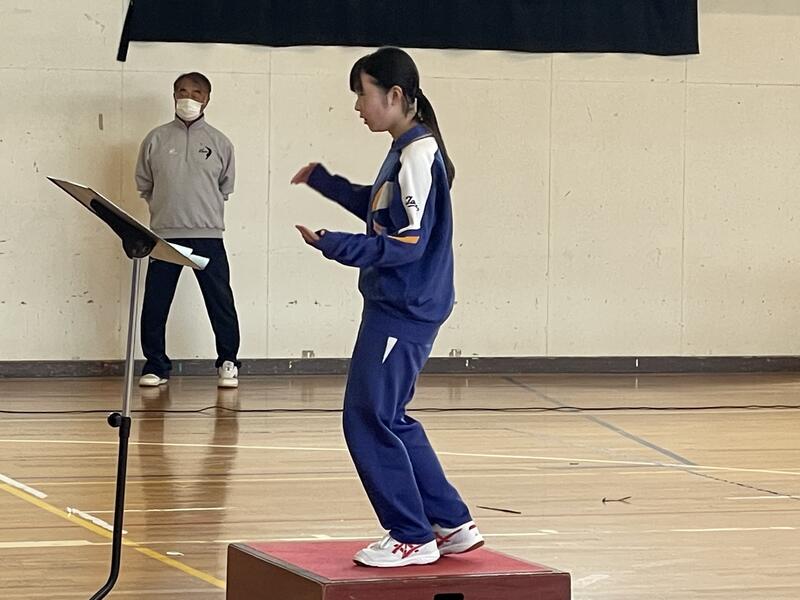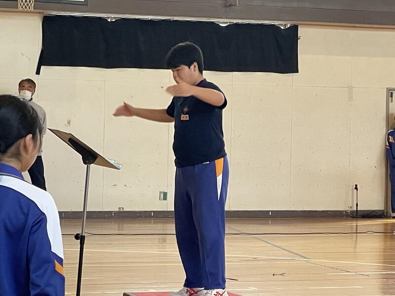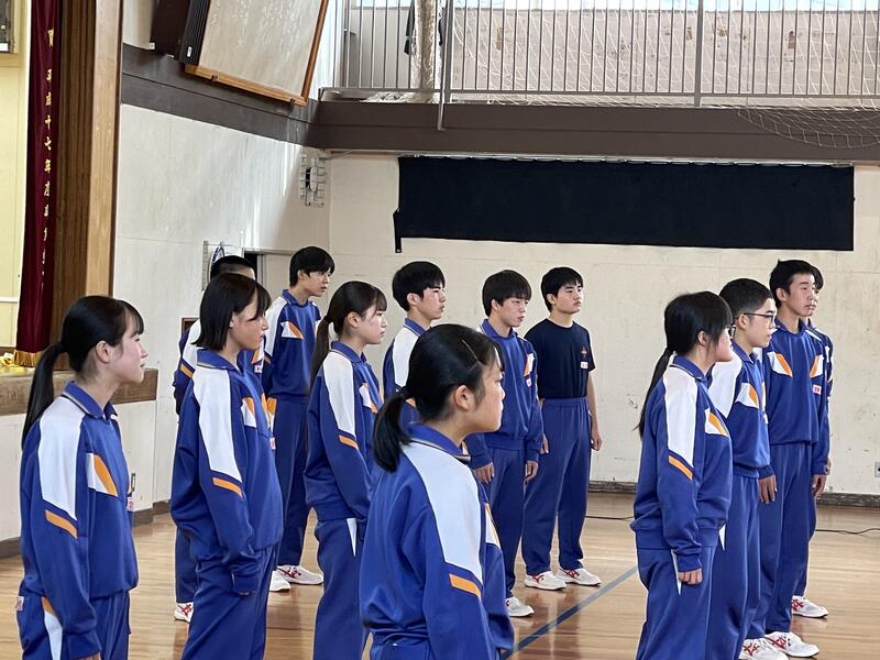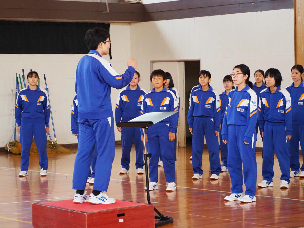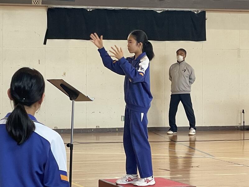音楽科担当の指導のもと、合唱コンクール実行委員が中心となり、入退場の仕方やステージマナーの確認を行いました。
