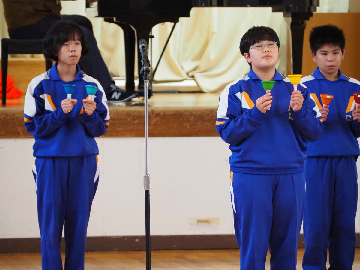 そして、各クラスの朝・昼・放課後の練習の成果を他クラスの同級生の前で発表...。子どもたちの表情には緊張した様子が見られ、演奏が終わるとホッとしたような表情を見せた生徒が多くいました。