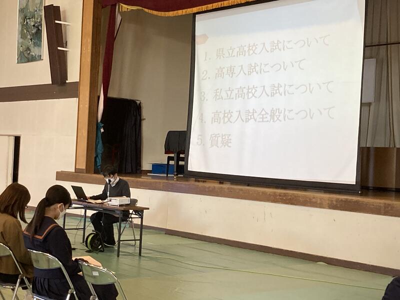 高校入試全般等について、進路指導担当より説明いたしました。来校いただいた保護者の皆様、ご足労いただきありがとうございました。