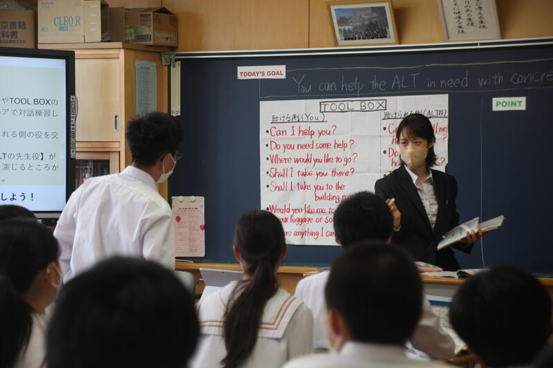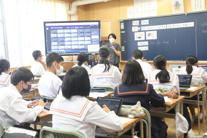 本校は、1年3組、2年3組、3年3組の英語の授業を公開し、市内から多くの先生方に参観していただきました。