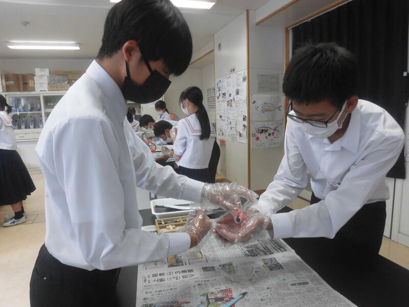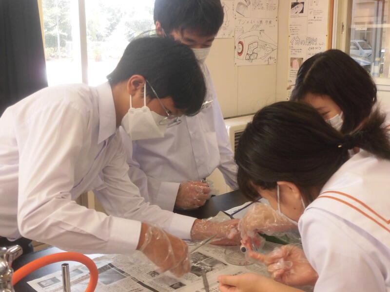 初めての解剖にドキドキしていたようですが、水晶体(レンズ)を取り出し、文字が拡大されて見えたことに感動していたようです。