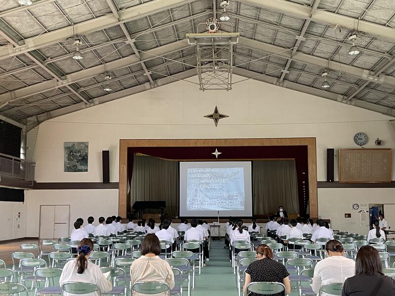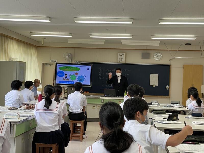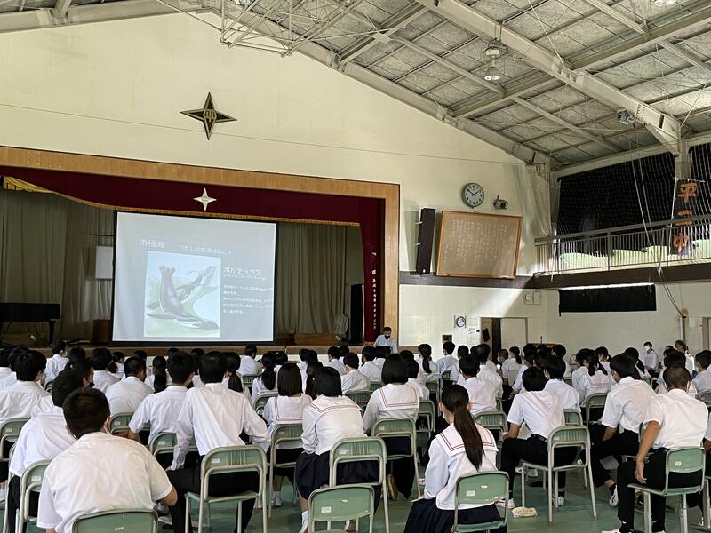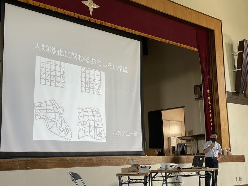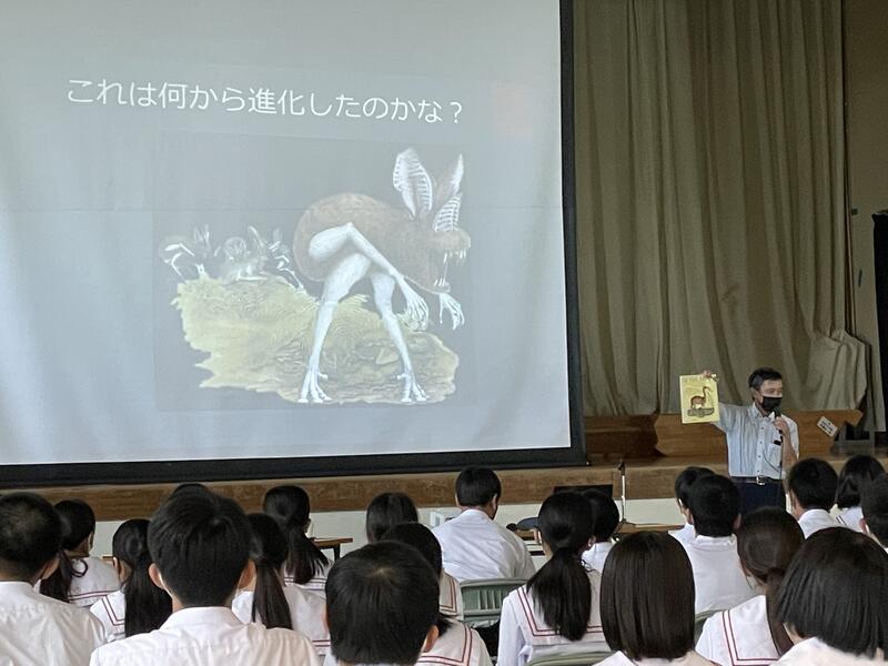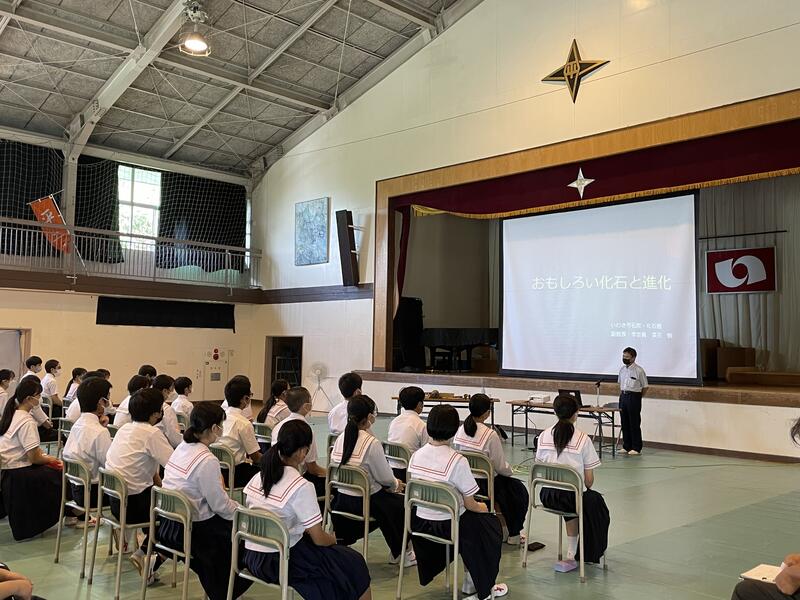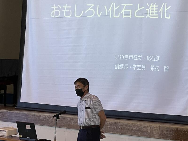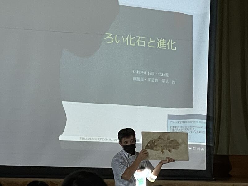 9/14(水) 5・6校時の総合の時間に、『いわき市石炭・化石館 ほるる』の副館長様にご来校いただき、化石や生物の進化についてご講義をいただきました。