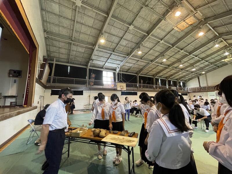 生徒たちは、その講義の内容に興味津々に聴き入っていました。また、実際に生徒たちは化石に触れることができ、大変貴重な体験をさせていただきました。