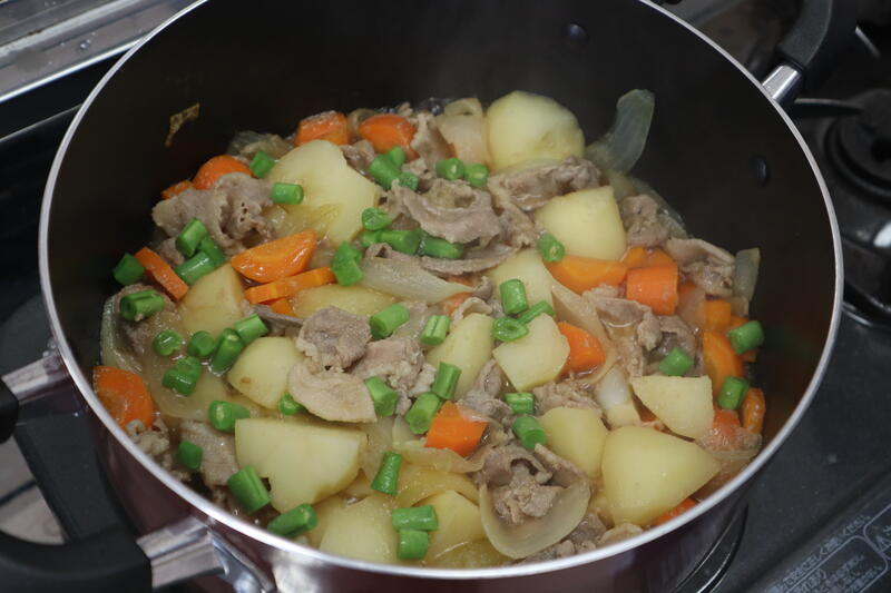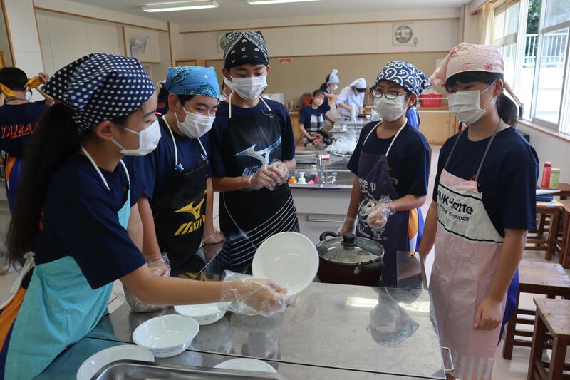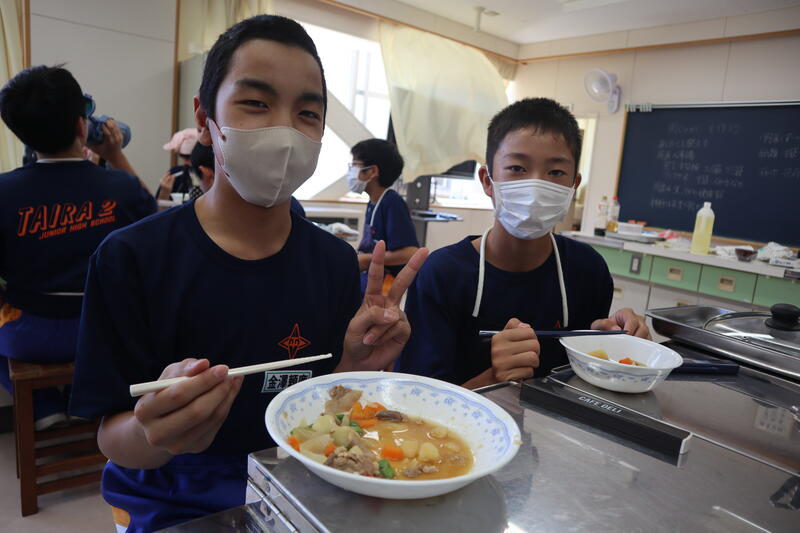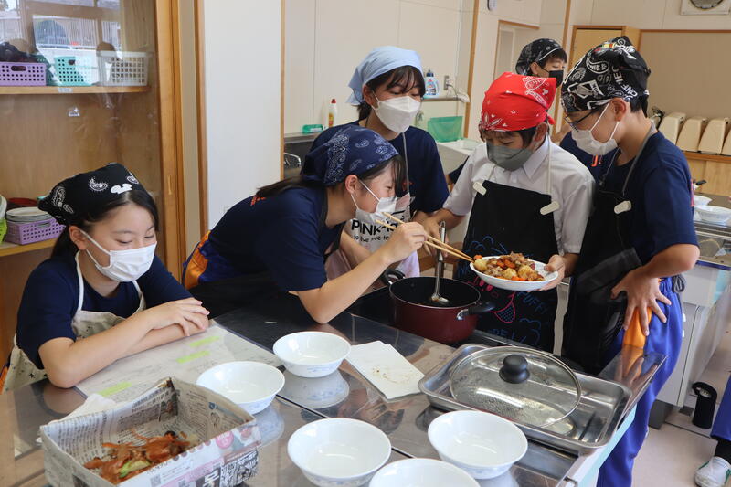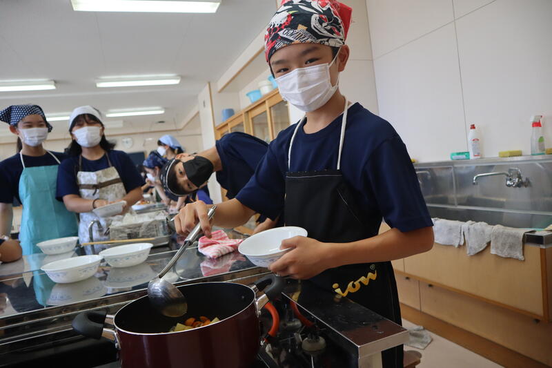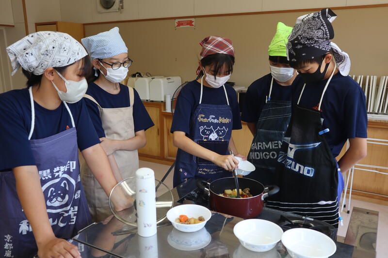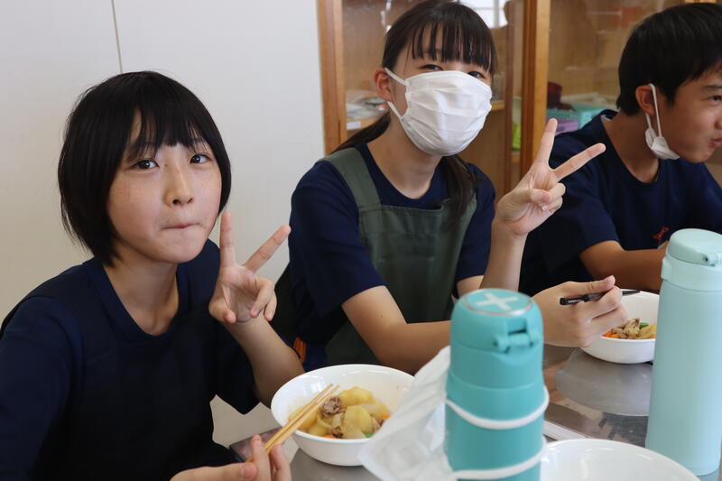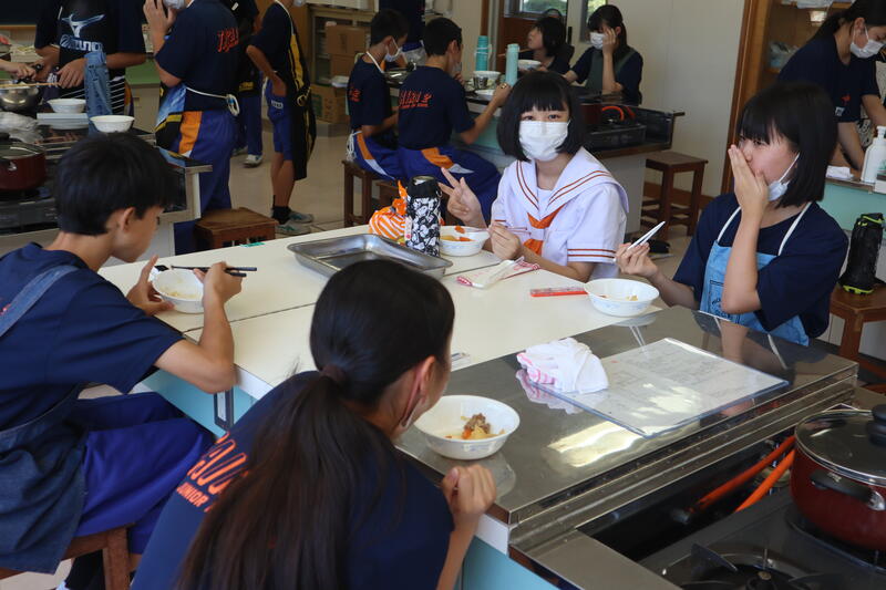 本日1年2組も調理実習を行いました。班で協力しておいしい肉じゃがを作ることができました。ぜひ家でも作って、家族に振る舞ってほしいと思います。