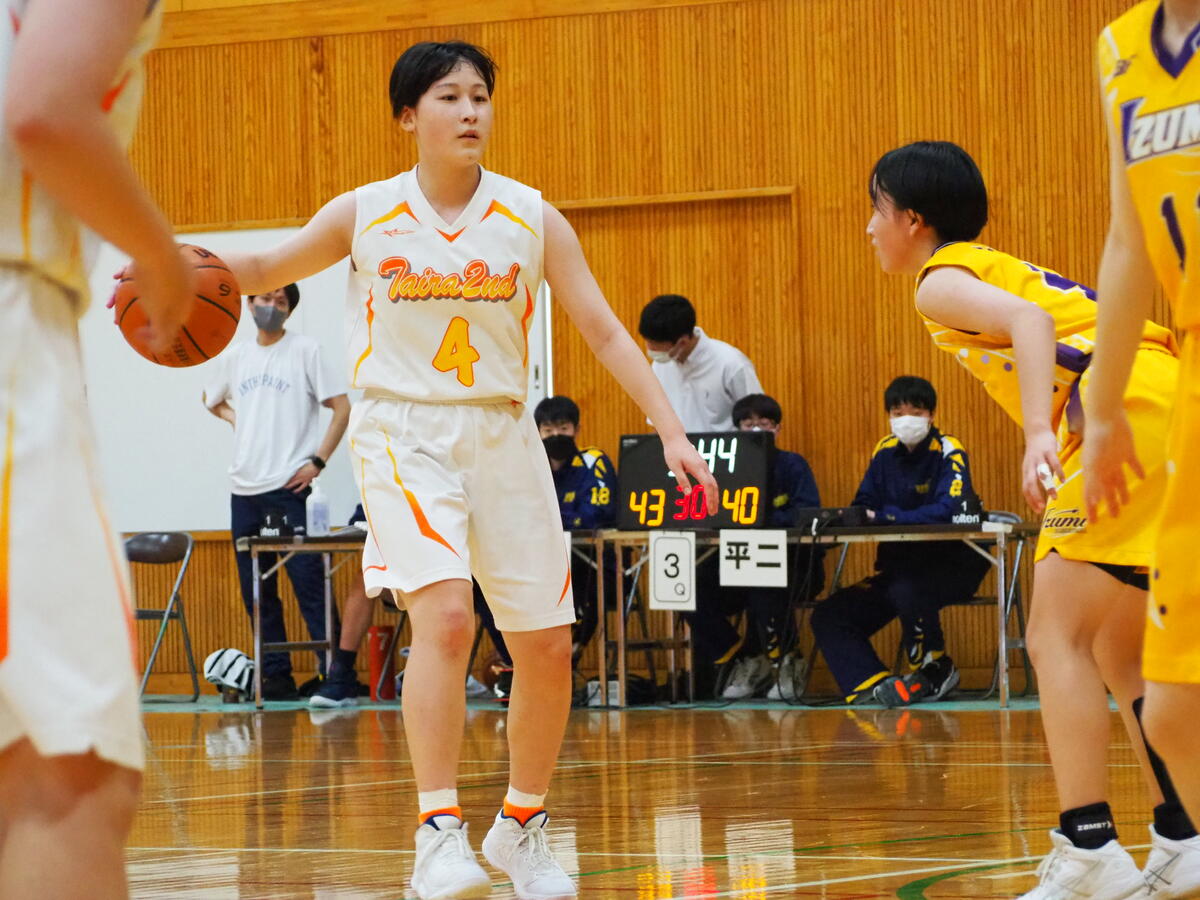 決勝の相手は泉中。序盤は相手に得点を許す苦しい展開で、必死に攻め続けて同点に追いつくも、51-55で惜敗しました。