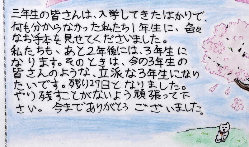 1年生からのメッセージを一つ紹介します。先輩への感謝の思いが綴られています。