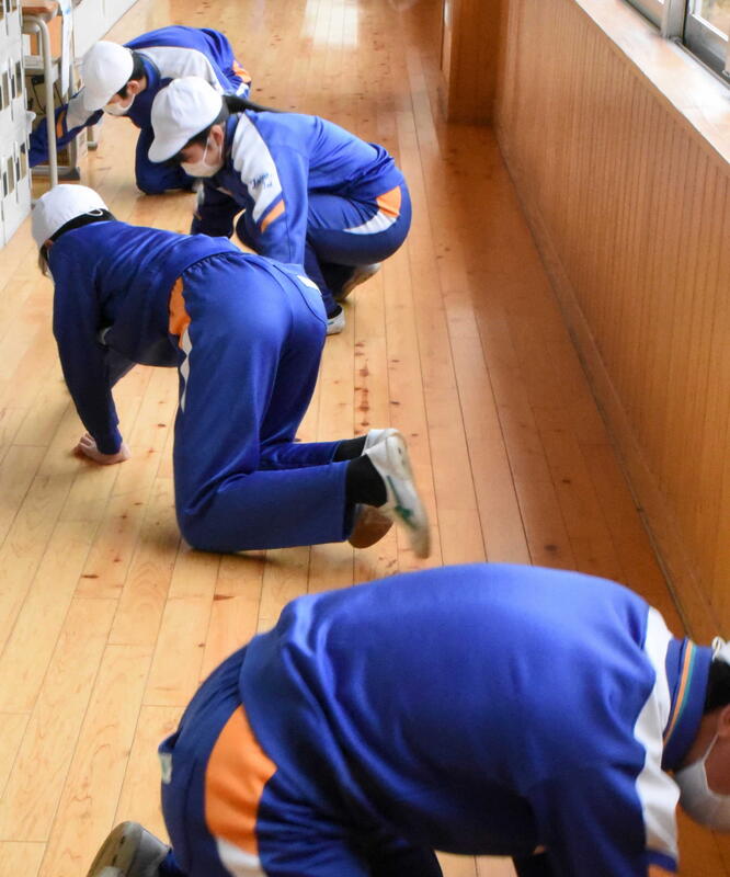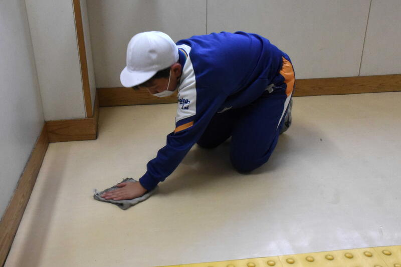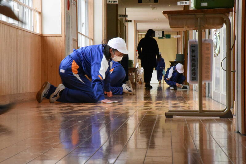 清掃の時間、全校生徒が黙々と作業に取り組んでいます。