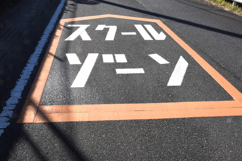 「スクールゾーン」の路面標示は、教育委員会にお願いし、昨年夏に設置したものです。