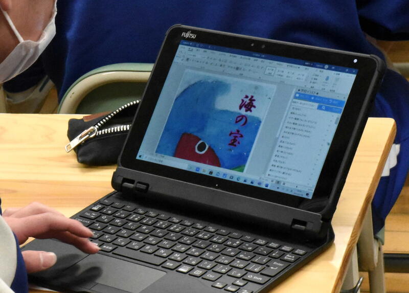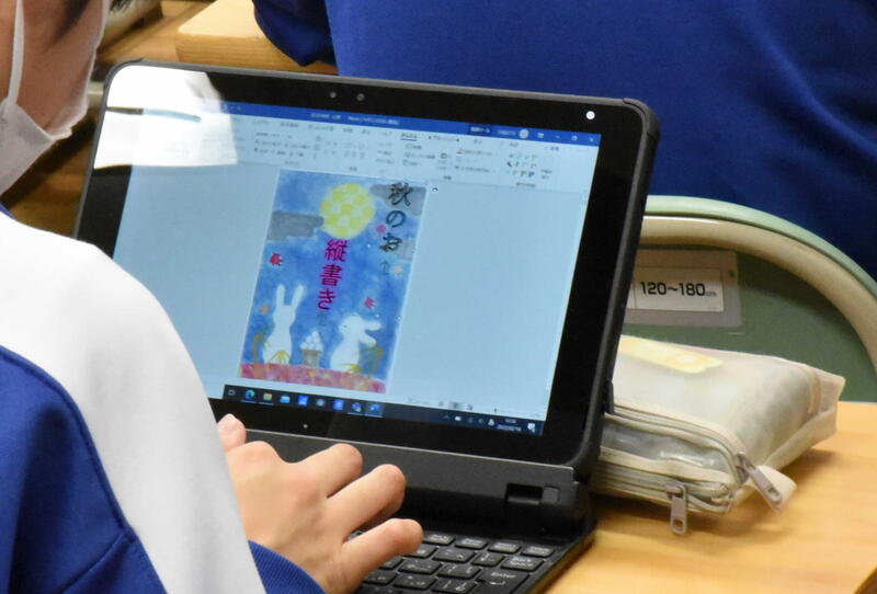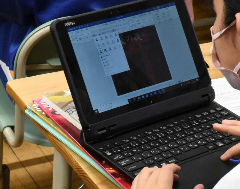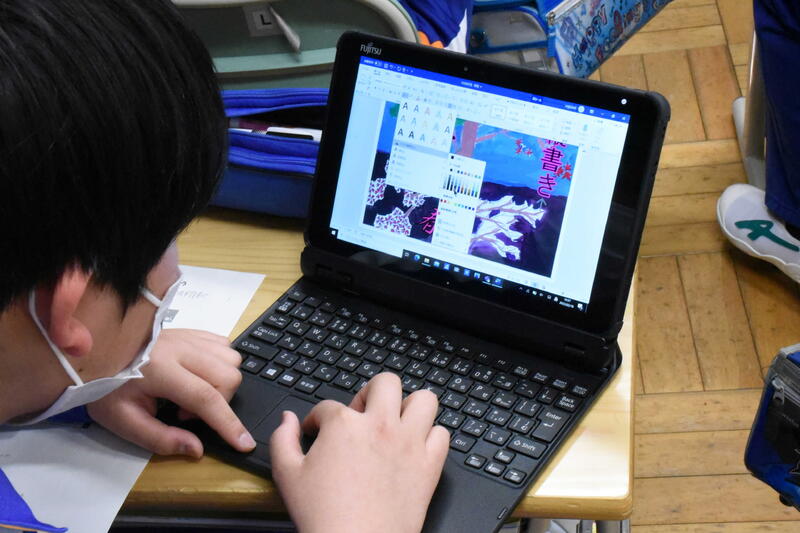 本日、3年3組では、タブレットPCで試行錯誤しながら文字をレイアウトする活動を行いました。見る人をひき付け訴えるには、どのようにしたらいいのか、真剣に考えながら、作業を進めていました。