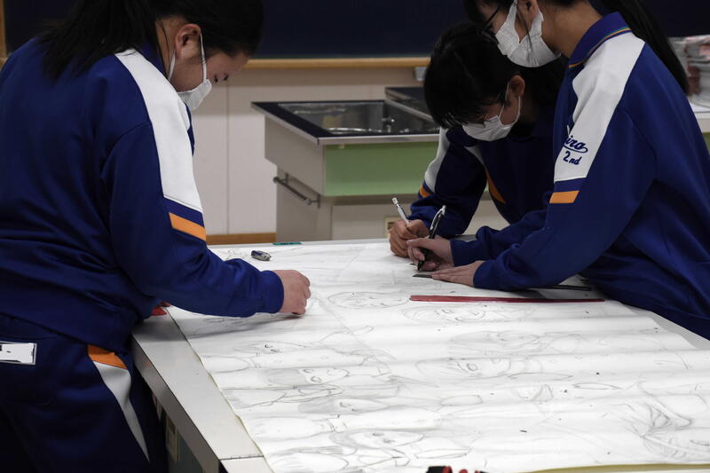 3学年の美術科で取り組んできた「和の魅力」を発信するポスター制作が、完成に向けた最終段階に入っています。