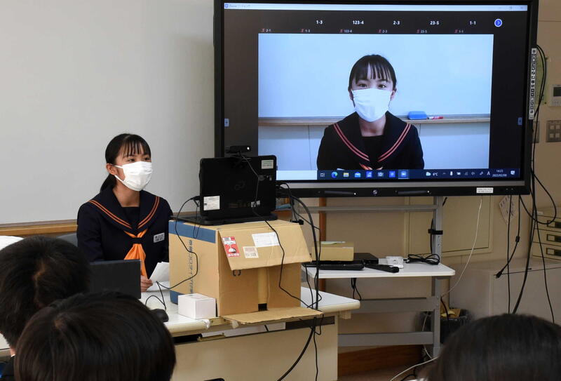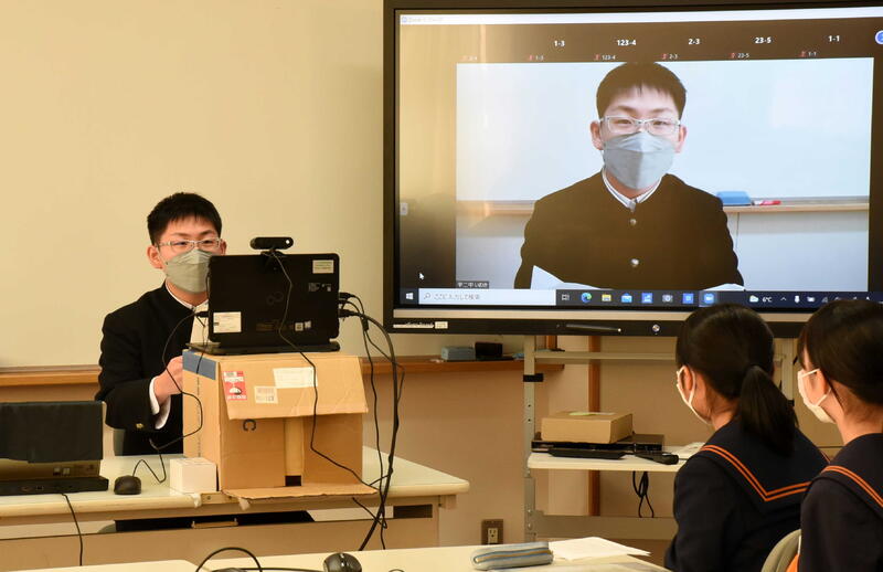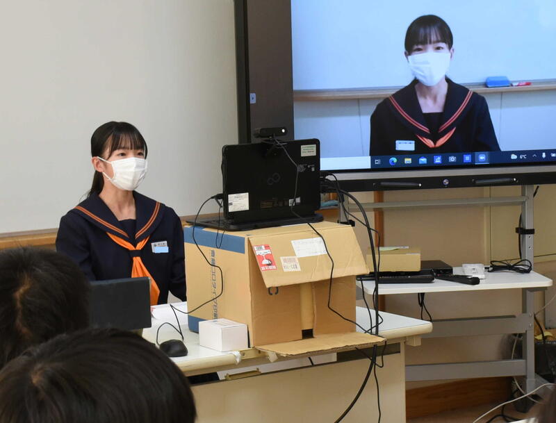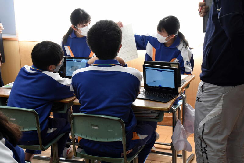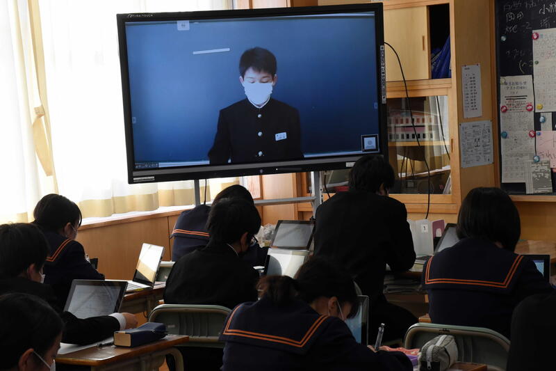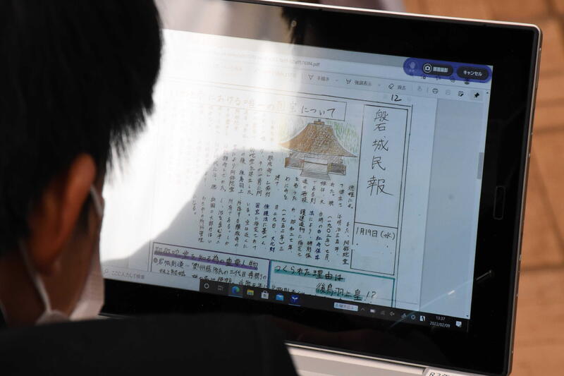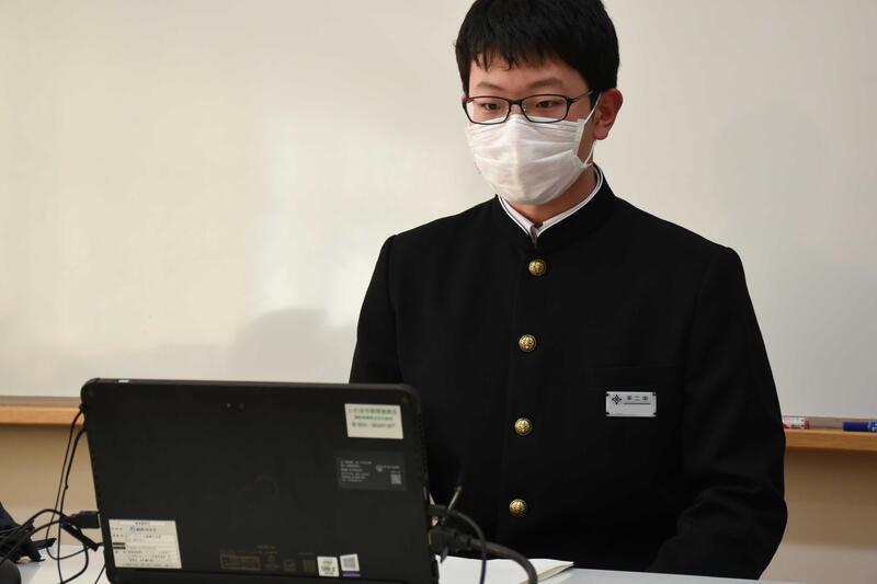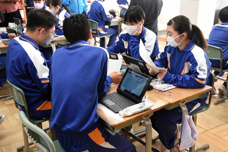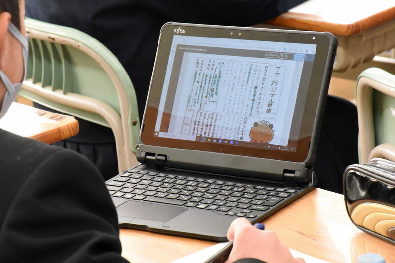 聞き手の生徒たちは、手元のタブレット端末に映る資料を見ながら発表を聞きました。