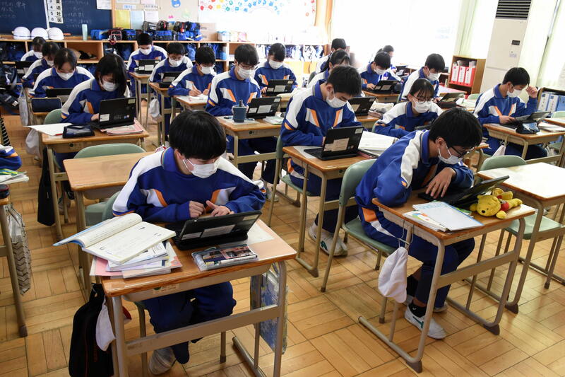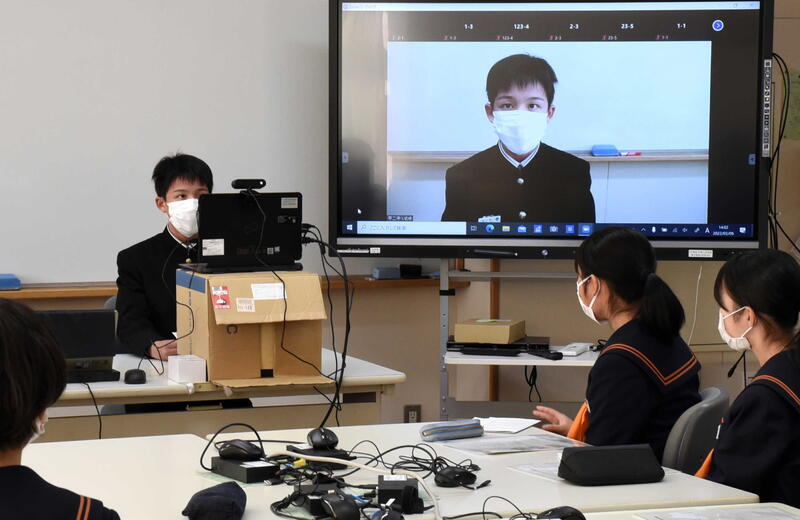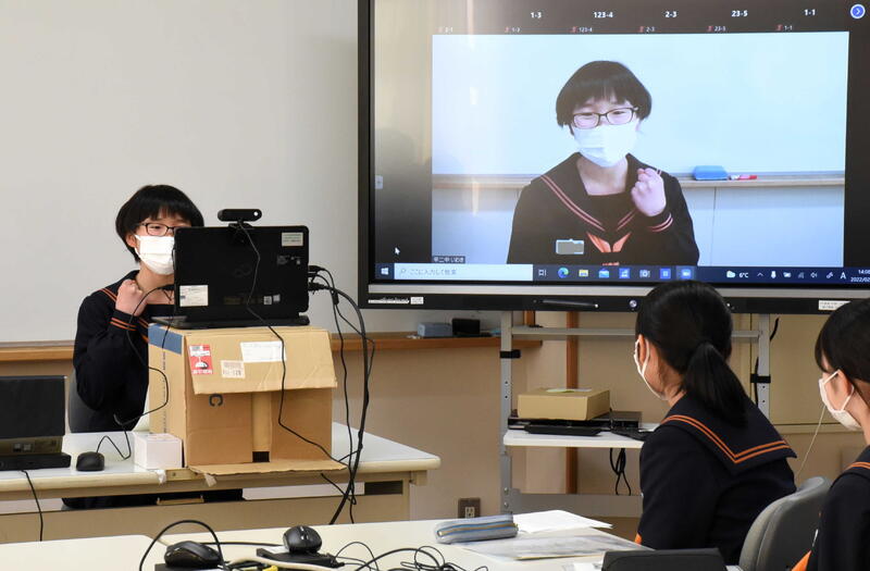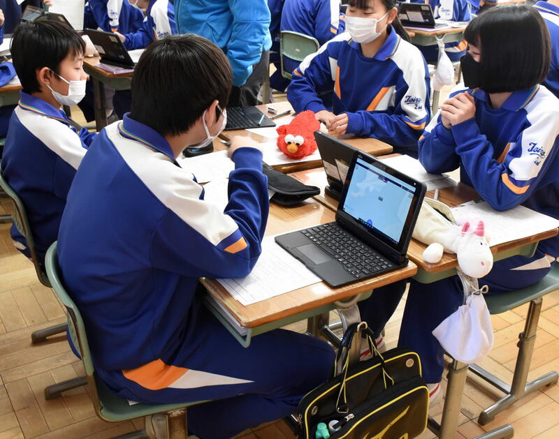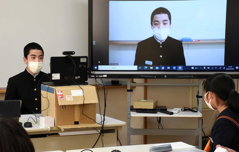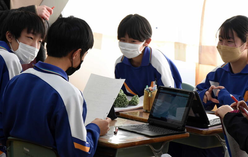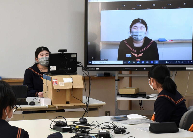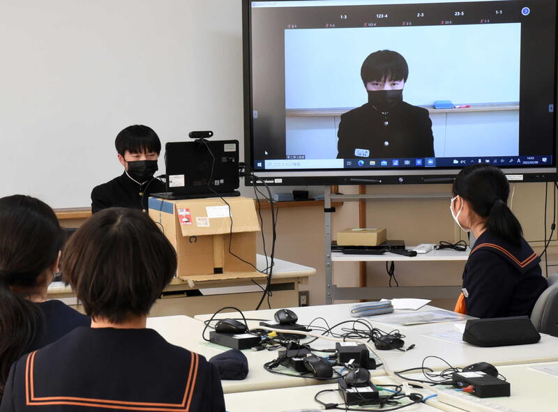聞き手の生徒たちは、手元のタブレット端末に映る資料を見ながら発表を聞きました。