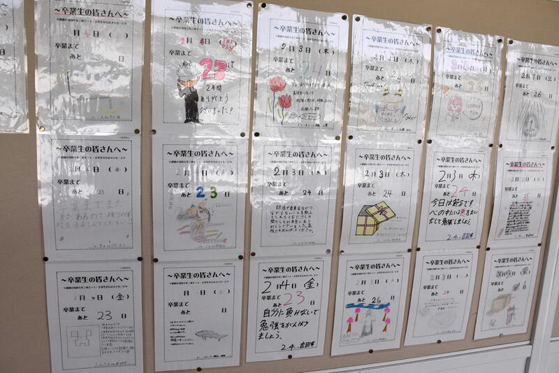 卒業式の日まで、日を追うごとにメッセージの数が増えていきます。卒業式の日まで、今日を含め登校日は23日となりました。