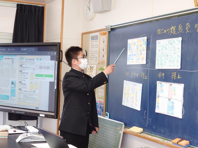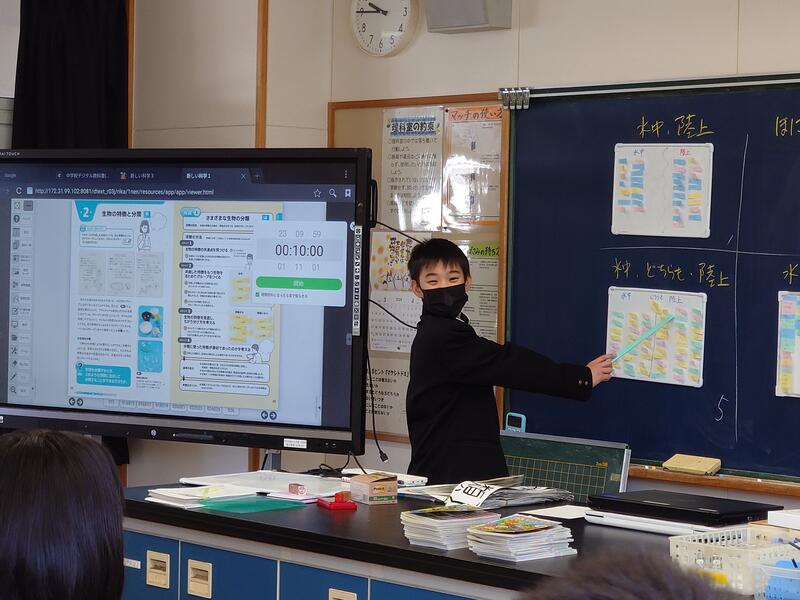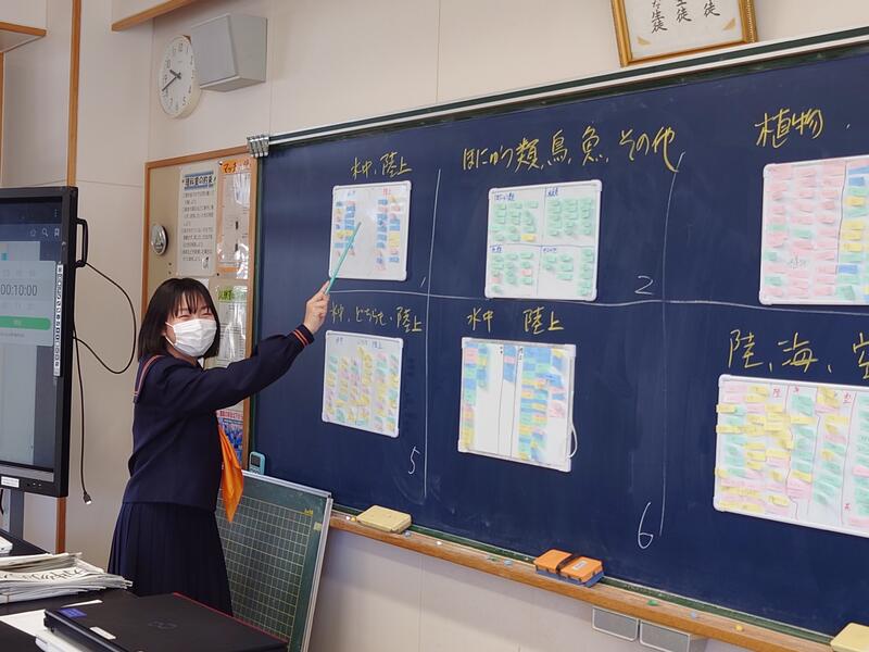 2024年4月19日 16時52分各班の考えで、生物の分類をして、どのように分類したのか、発表しました。